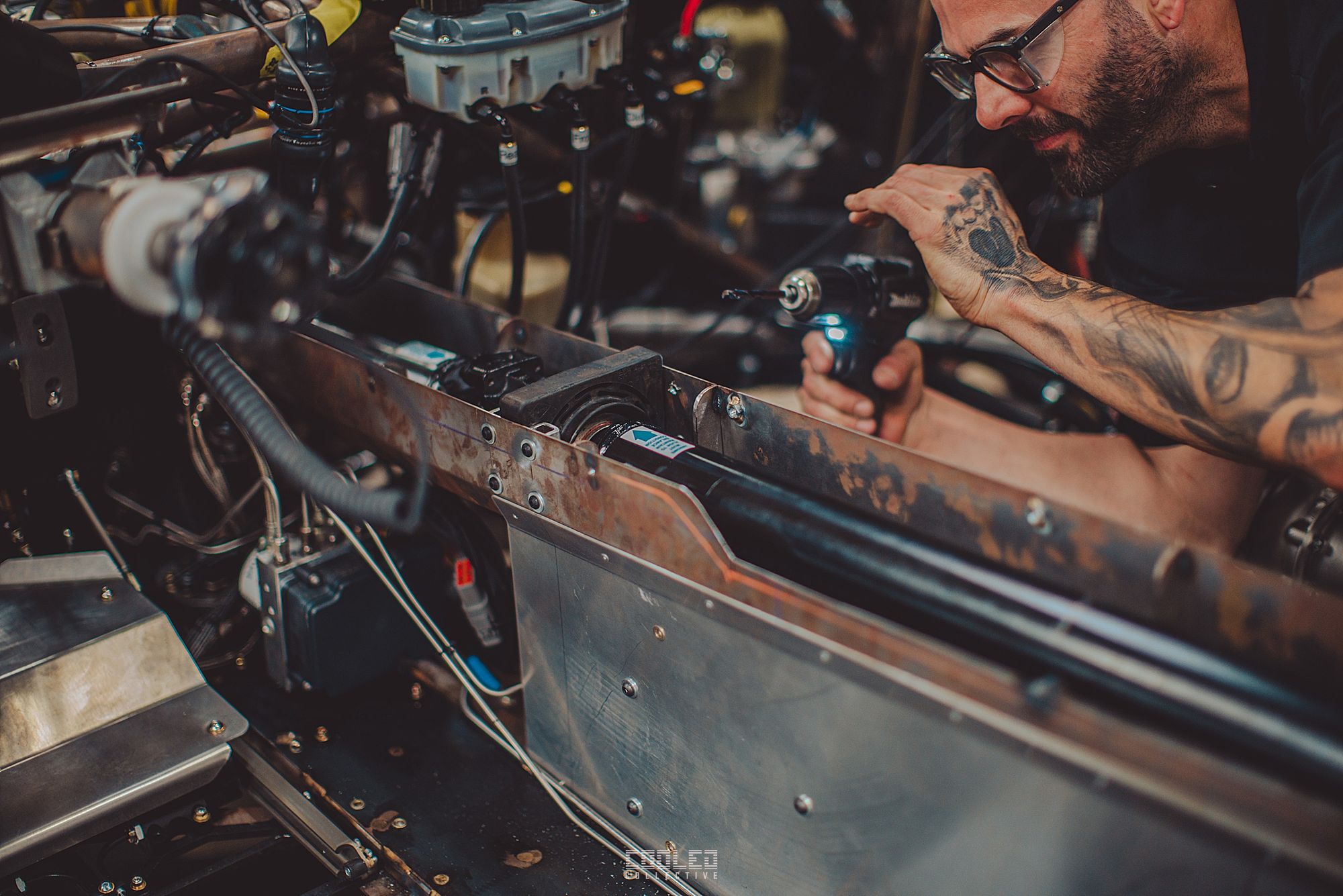 Upon closer inspection, I noticed that the driveshaft was going right through the cabin! Since this build is AWD and without having enough under car clearance, the driver cabin was the only choice. All I can imagine was 1400 horses spinning this rod full force with the craziest winding sounds and vibrations. Ken Block is a bold man!