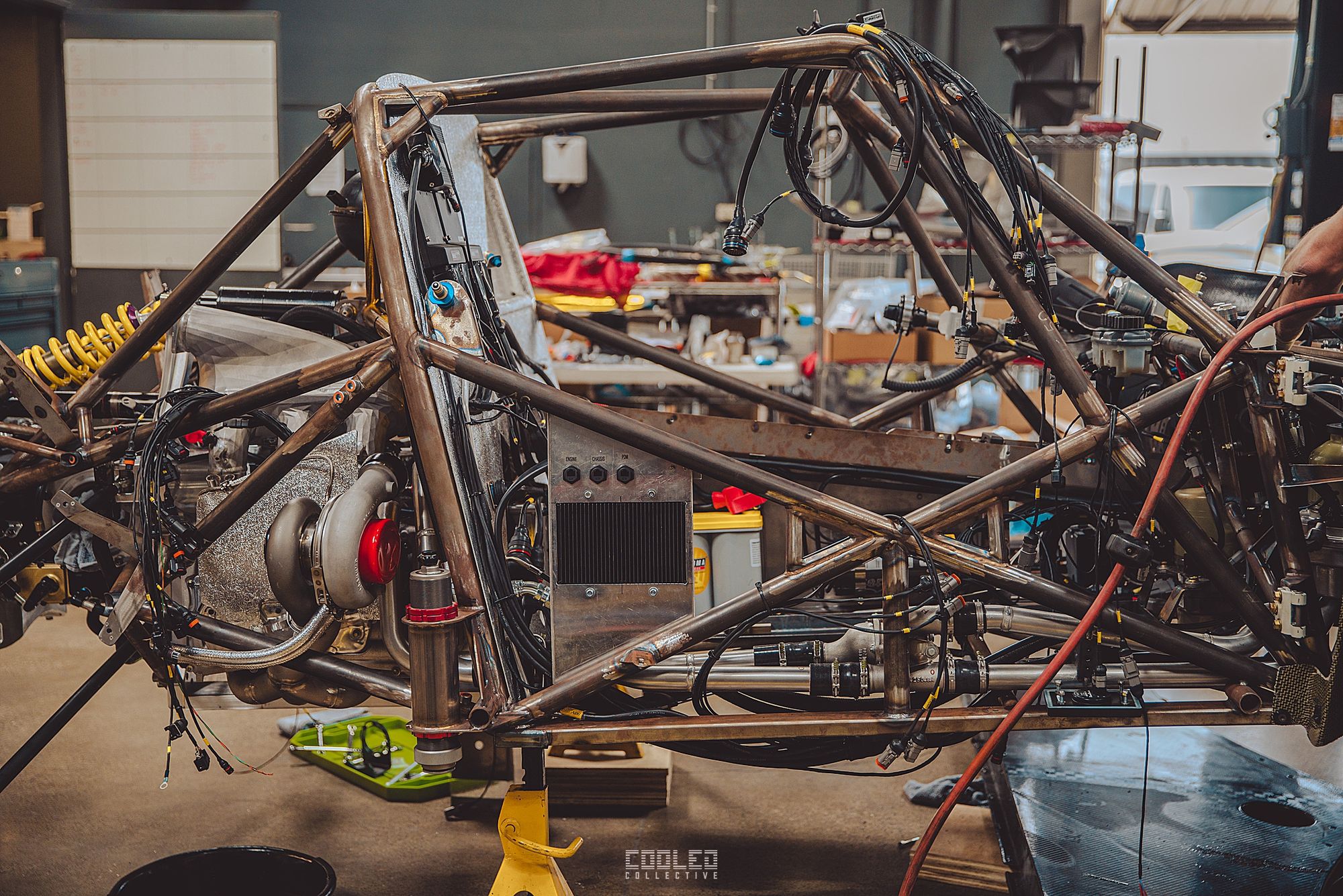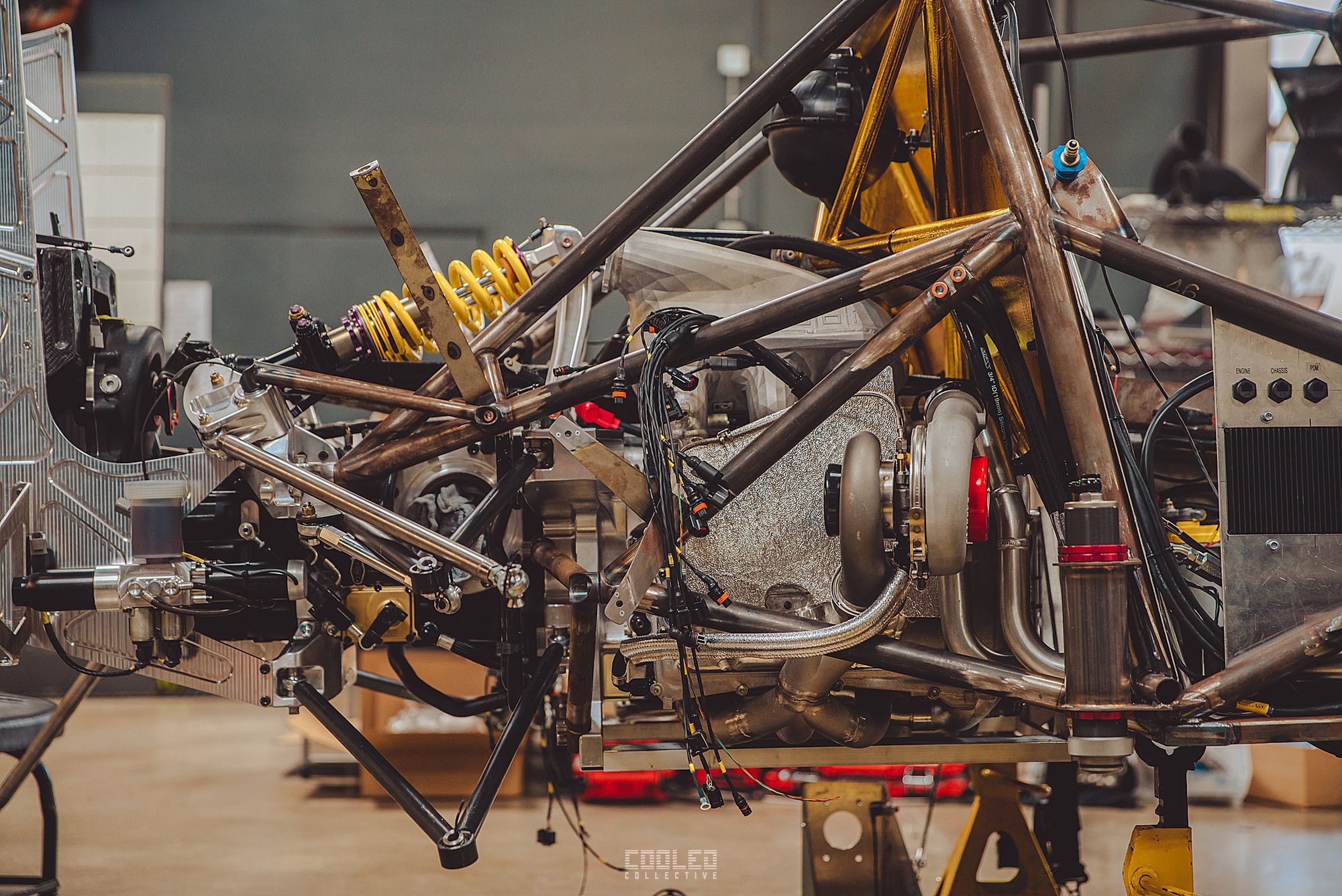 The full tube chassis developed by Scrabo Performance includes a double A-arm pushrod system with KW 4 way dampers. What is unique to this build is the active ride height system with real time GPS controller. With the constant changing of terrain at PP, this was a system BBI was banking on to give them an advantage.