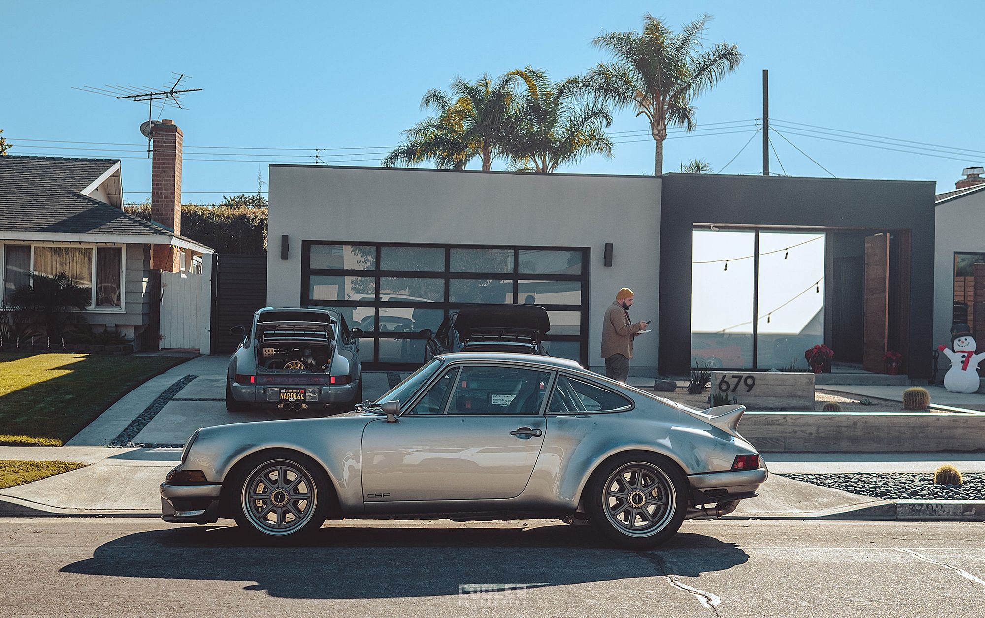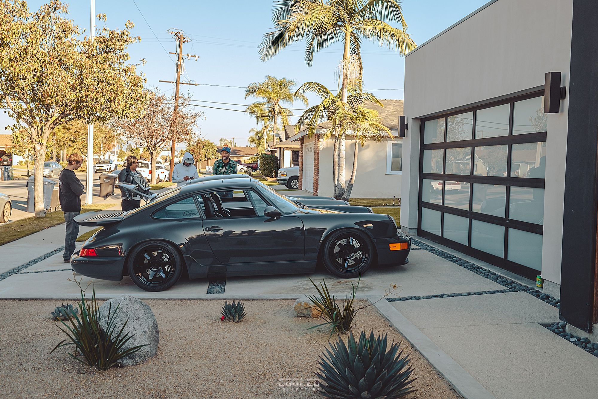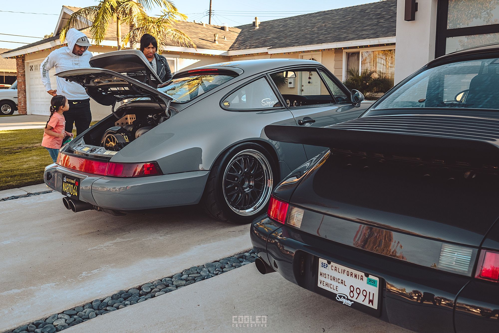 In front of the driveway was Ravi CSF's newest custom built 911 hot rod which debuted at SEMA this year. If you haven't seen my coverage on it, check it out here, SEMA Part II. On the driveway was Aaron and Jared's 964 sitting pretty.