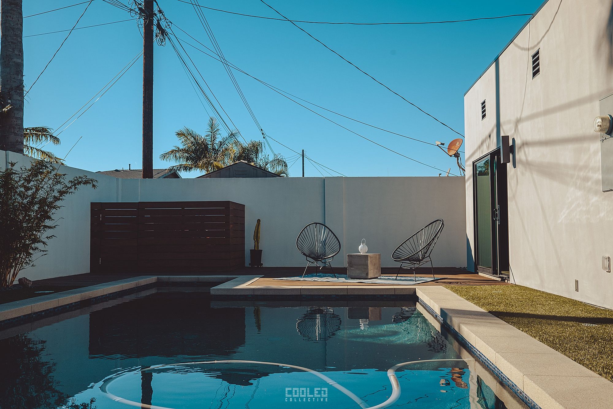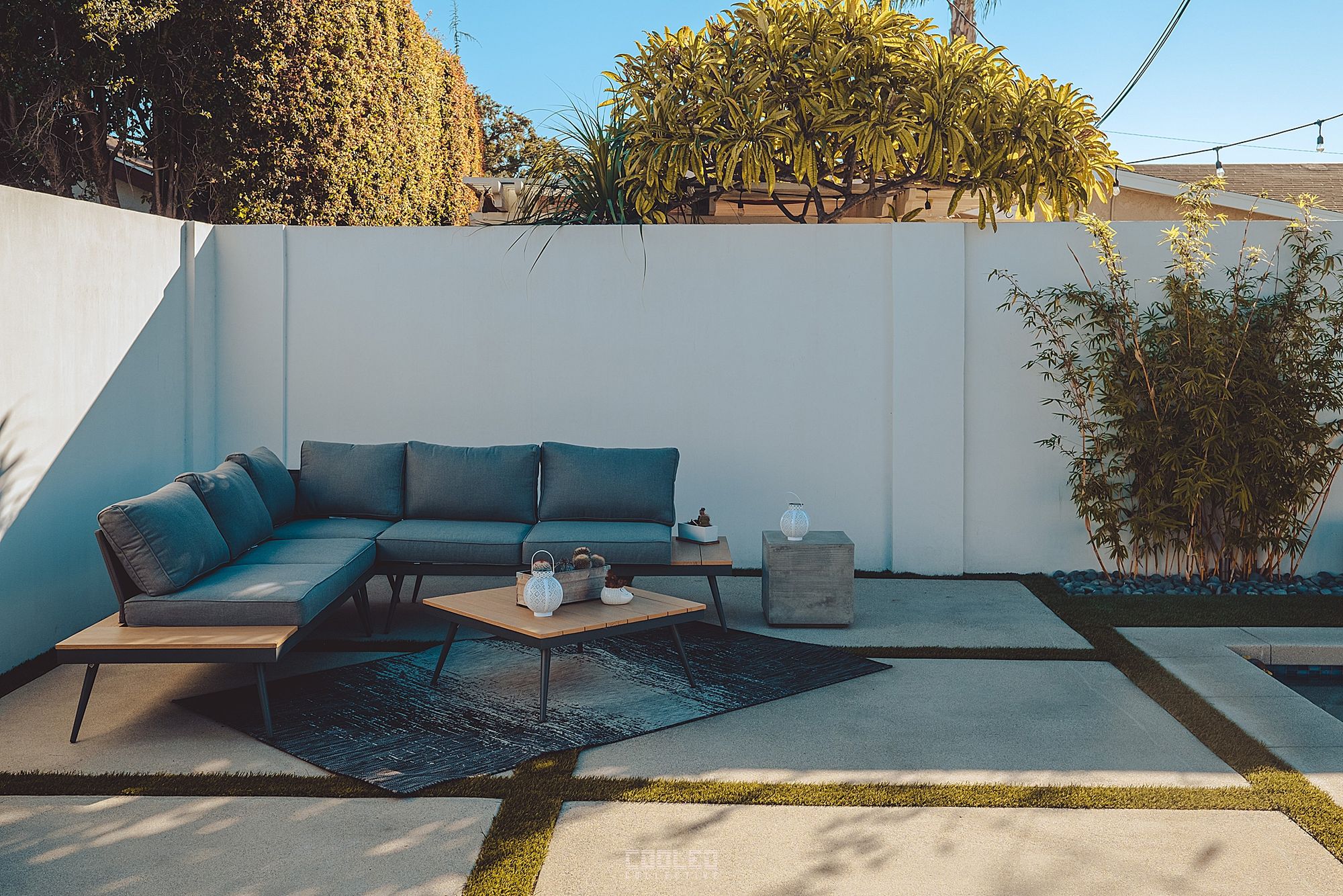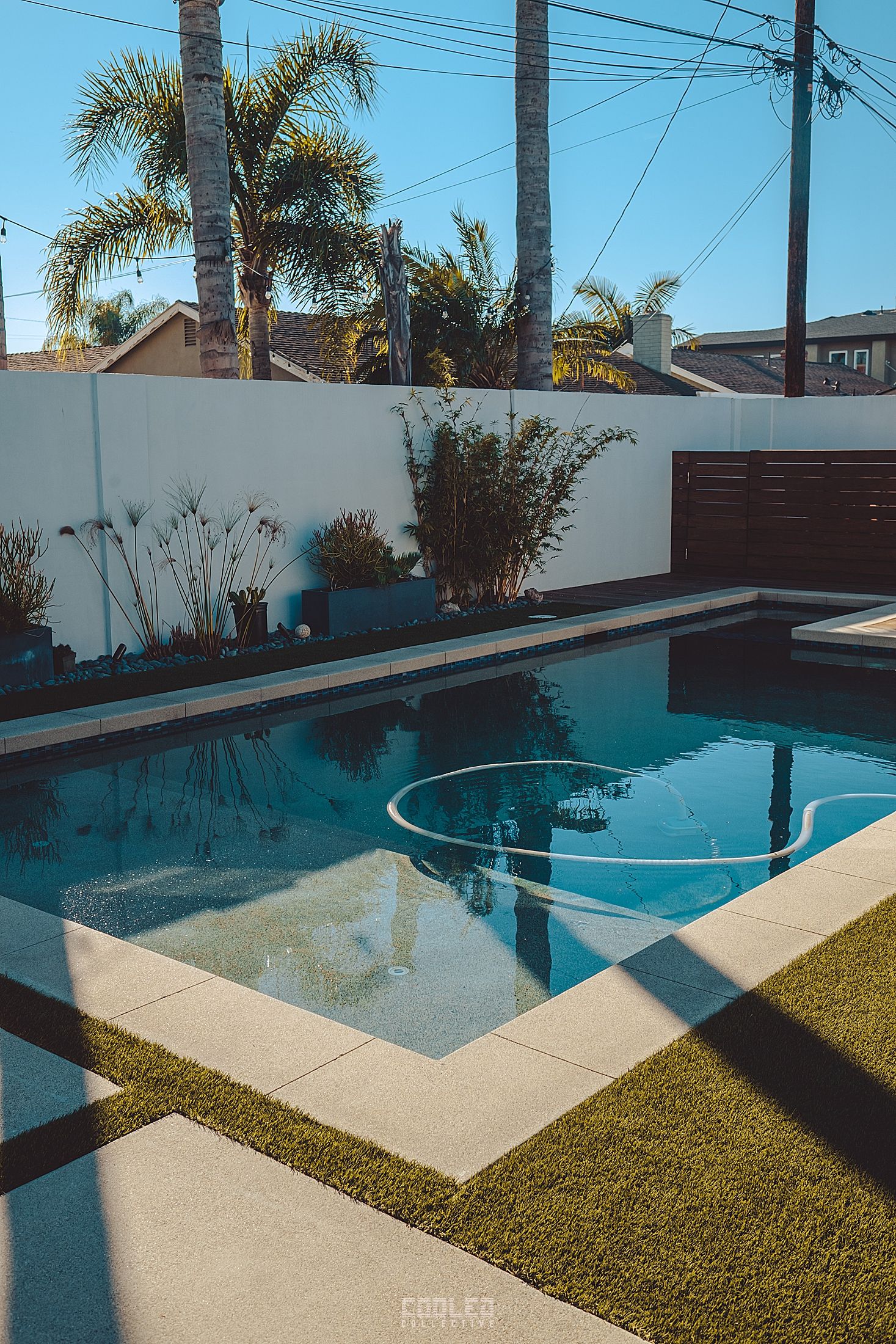 Landscape is pretty vital to the overall aesthetics of the home so Ryan did not hold back in the backyard. A quaint backyard with a pool and meditative feel.