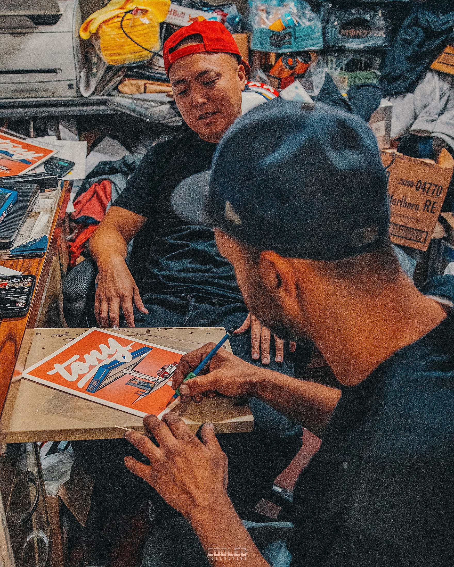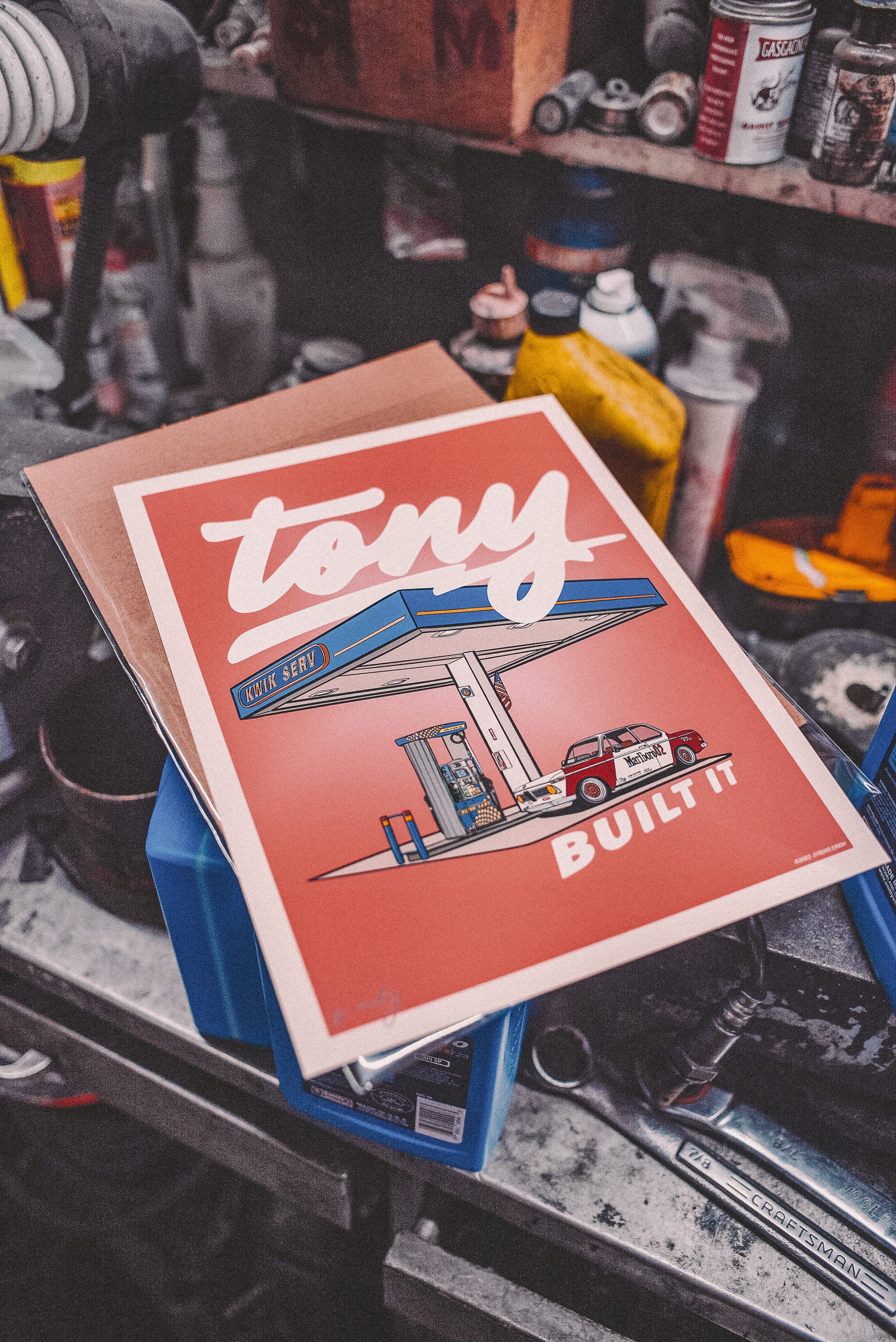 We ended up doing a drop for Tony's BMW Turbo 2002 and did a handful of prints with signatures on them. This is us in the backroom getting the work done, just like any old guys would do it lol. The drop was a great way to tie everything together.