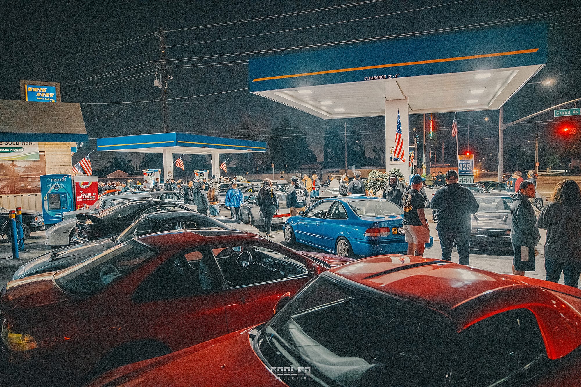 Since it was a weekday, people started to trickle in after work and the gas station started to fill up at a nice pace. Many of the passerby's were enjoying the car vibes while sitting at the red light on Grand Ave.