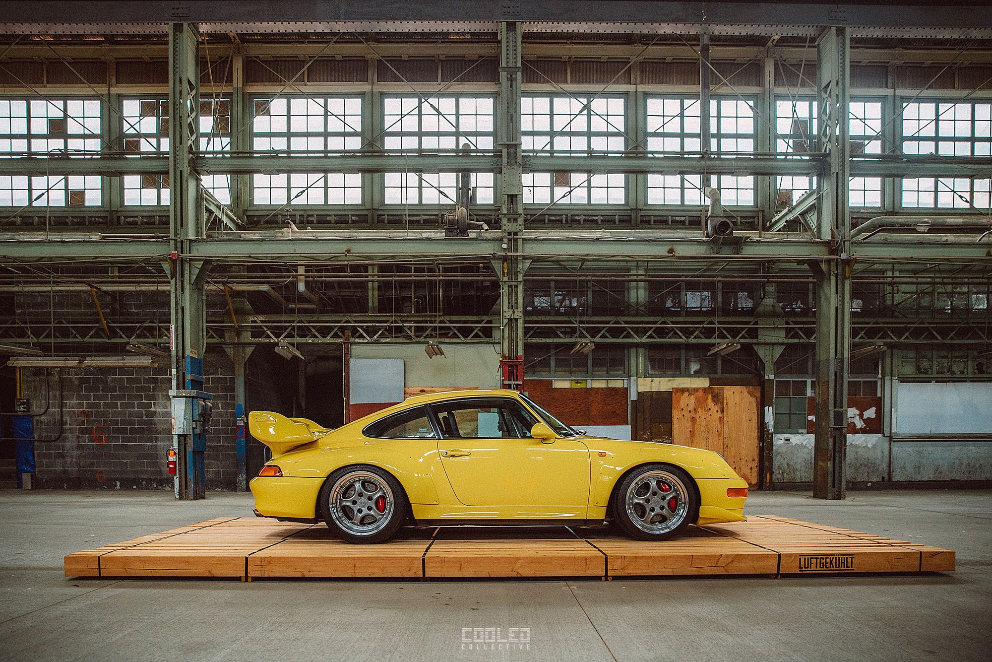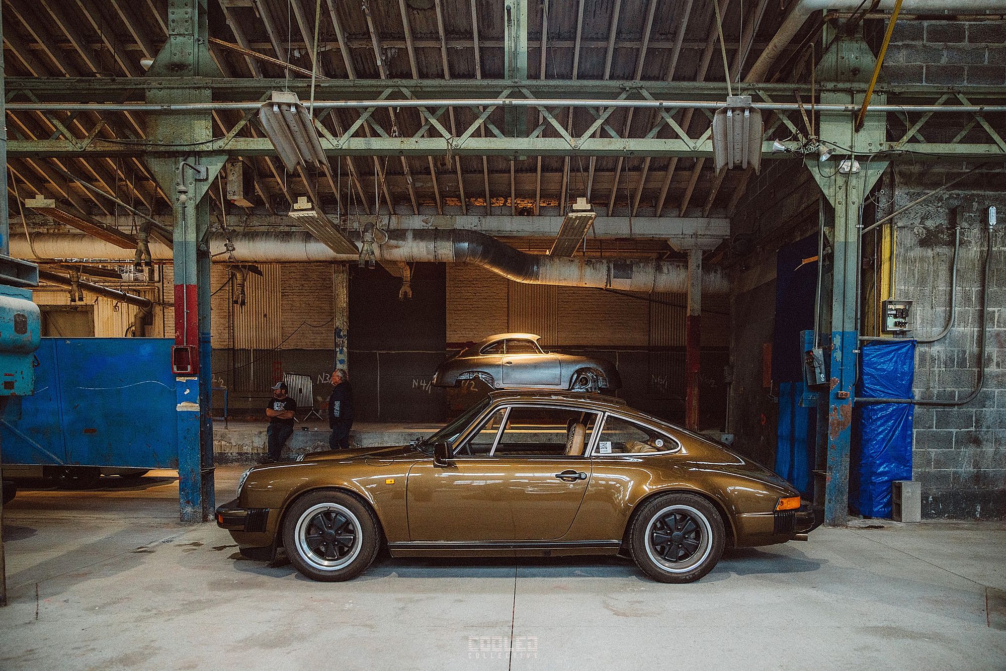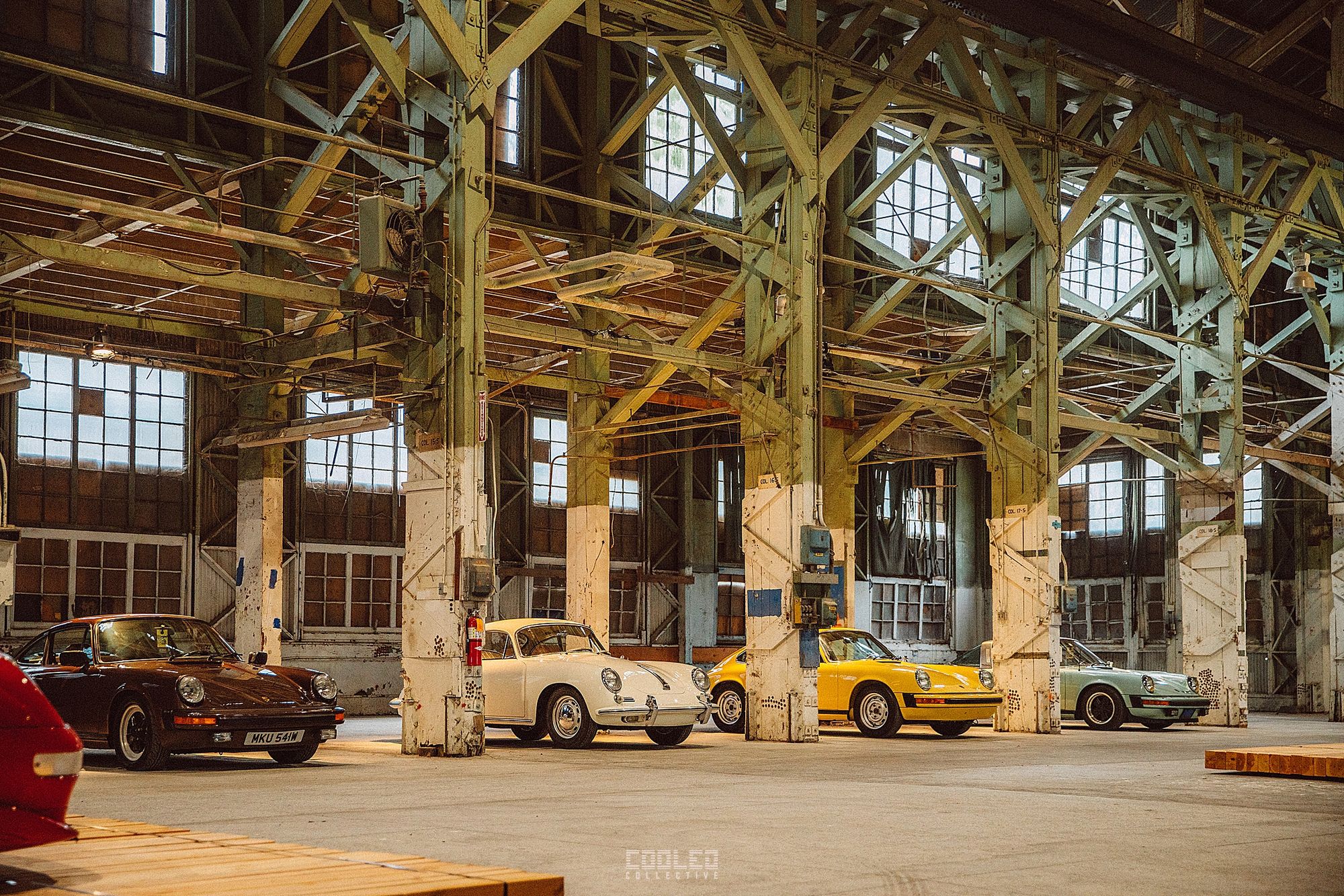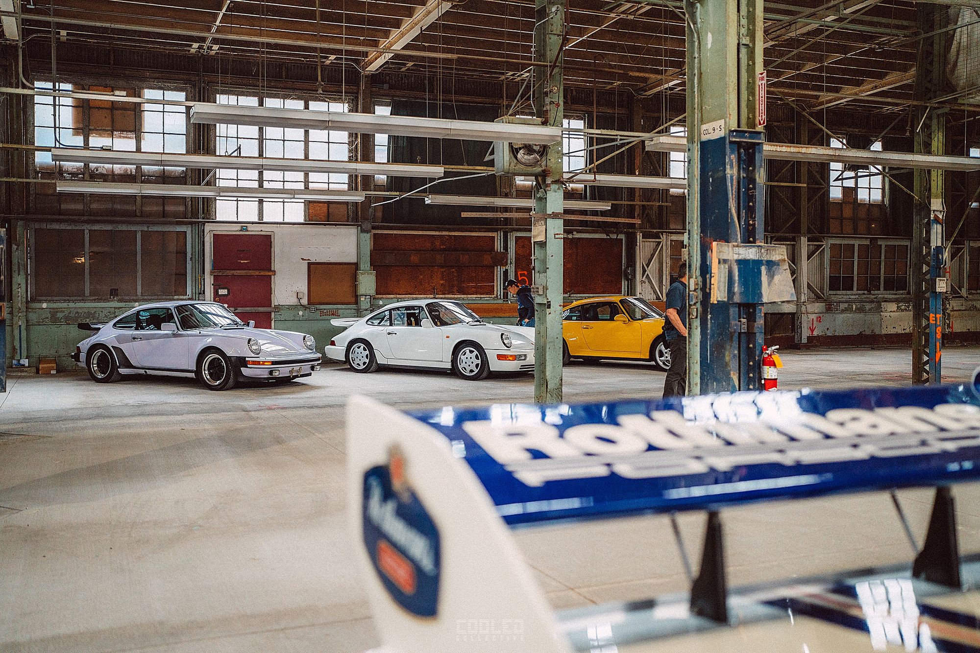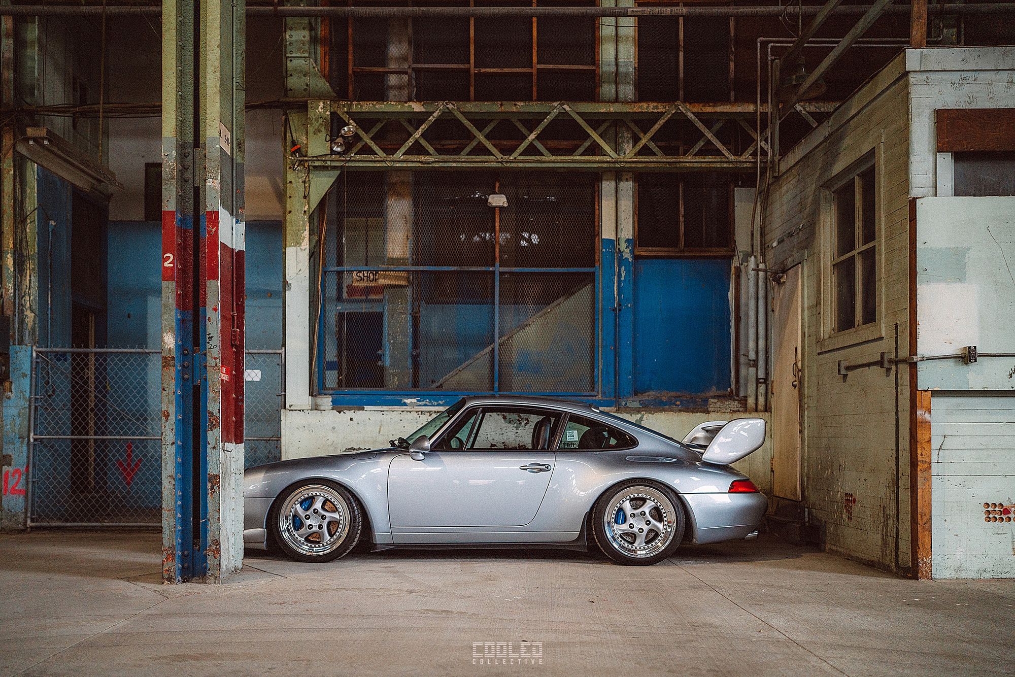After a good 30 mins of shooting the yard, I ended up finding the gem of the show. A long and narrow warehouse where they probably built the naval ships. This space is everything a photographer longs for. High vaulted windows, lots of textures and colors, wide open space, large doors to control light.... just a sweet magical place. First car I see inside is John's 993 tucked away in a corner spot. A great spot if you ask me.