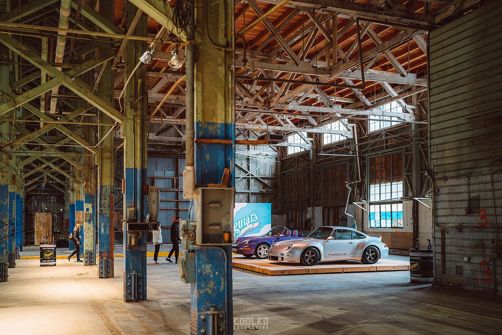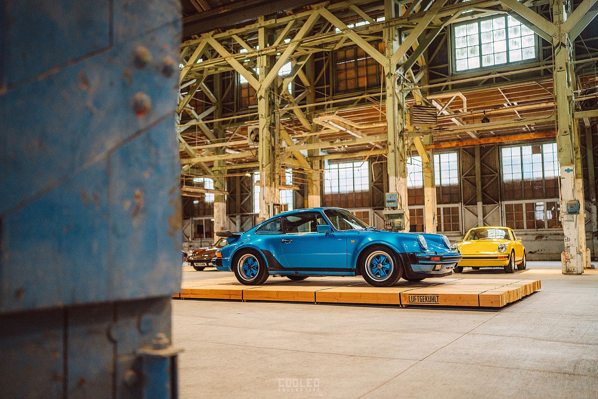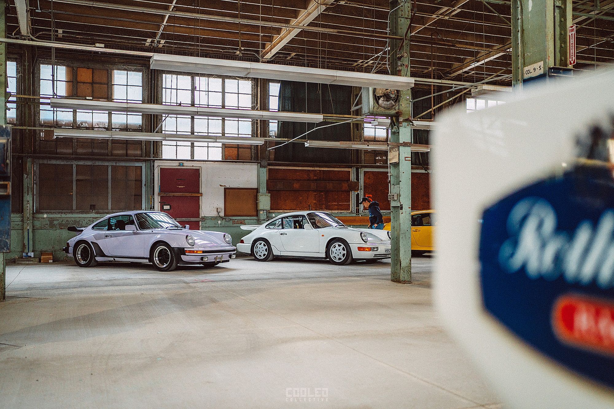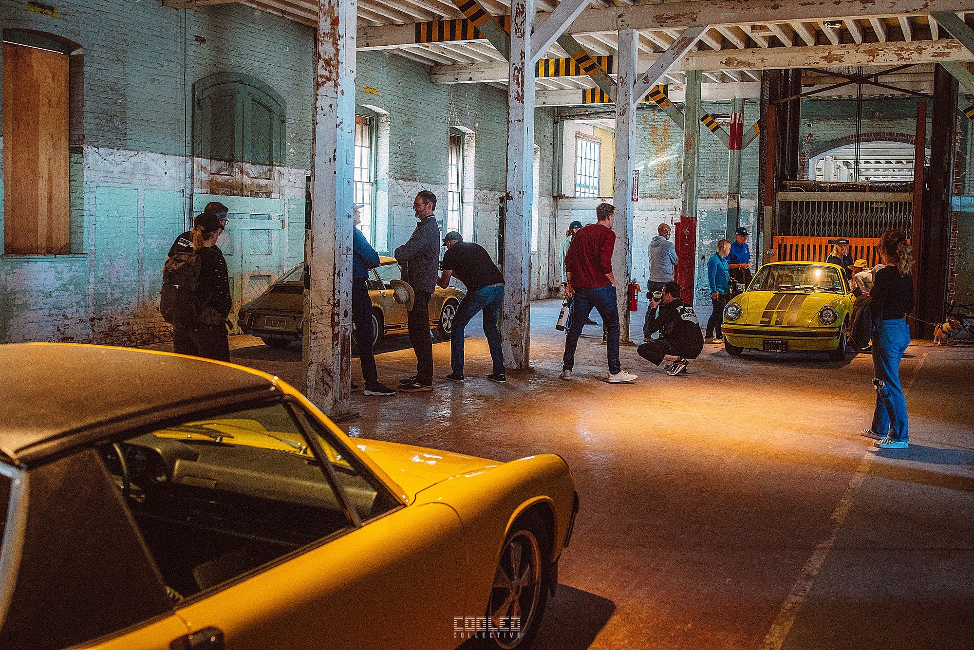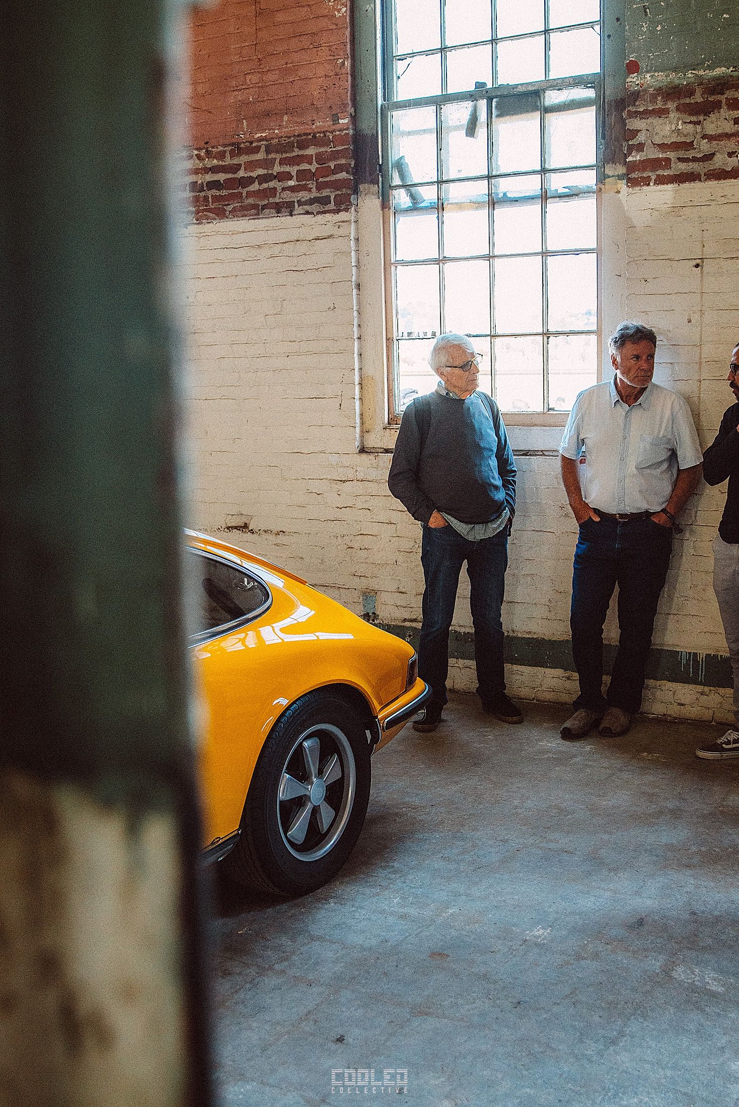 After a good 30 mins of shooting the yard, I ended up finding the gem of the show. A long and narrow warehouse where they probably built the naval ships. This space is everything a photographer longs for. High vaulted windows, lots of textures and colors, wide open space, large doors to control light.... just a sweet magical place. First car I see inside is John's 993 tucked away in a corner spot. A great spot if you ask me.