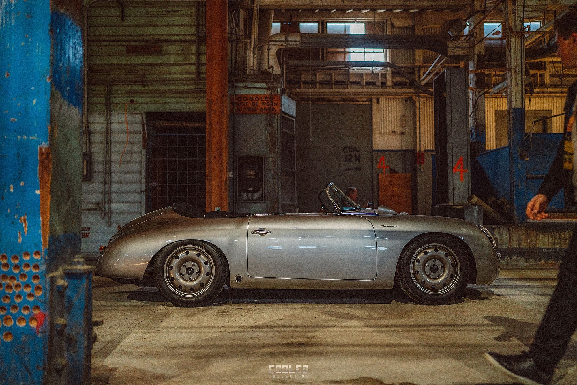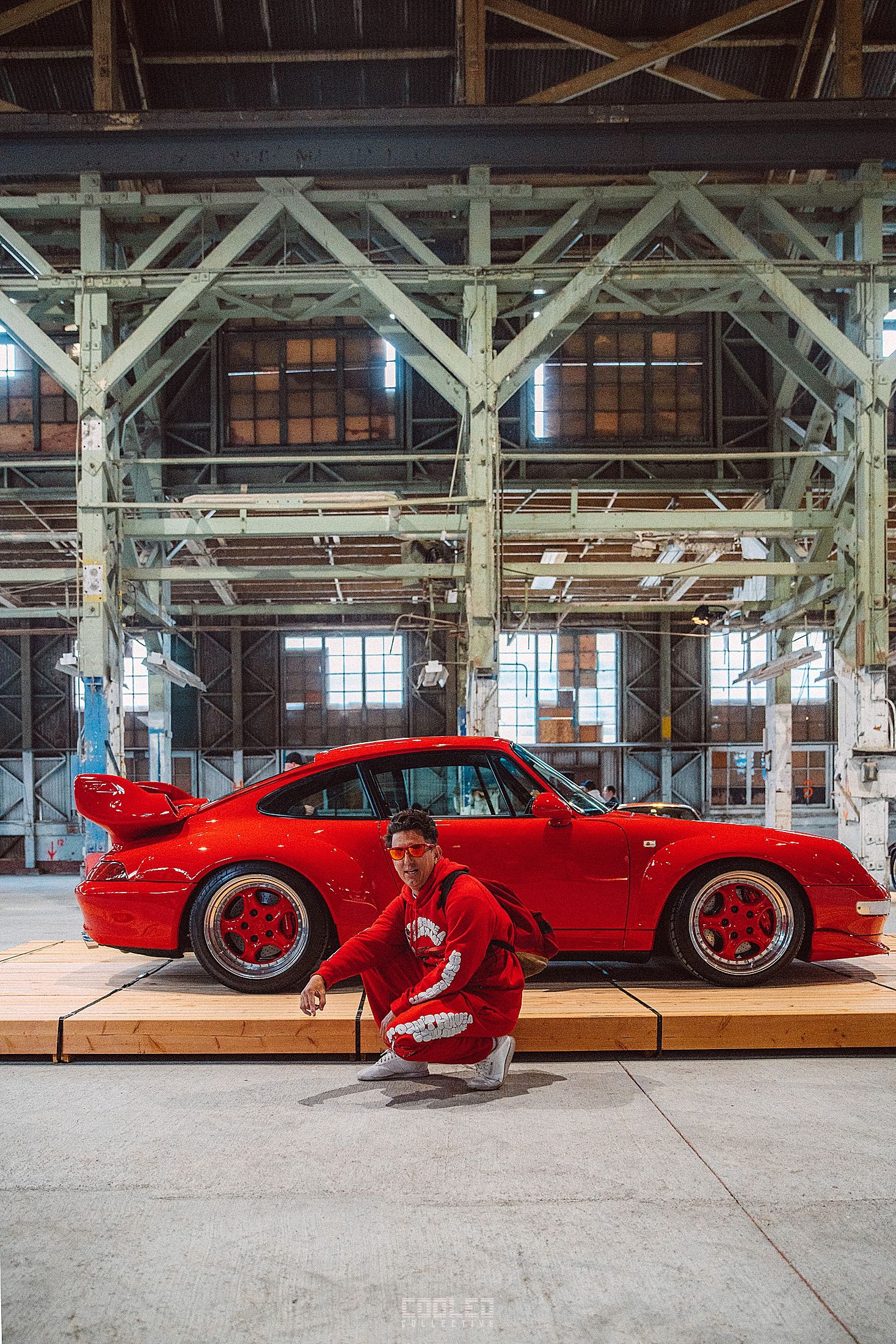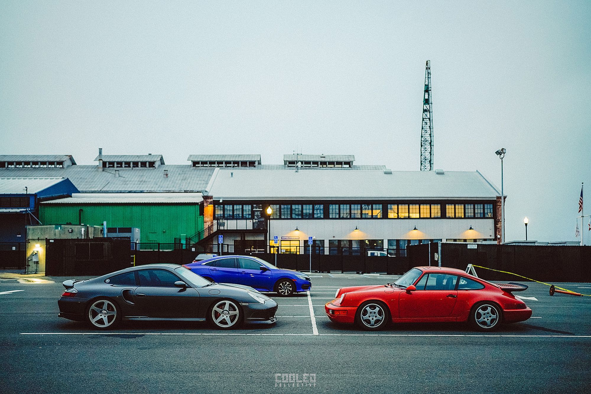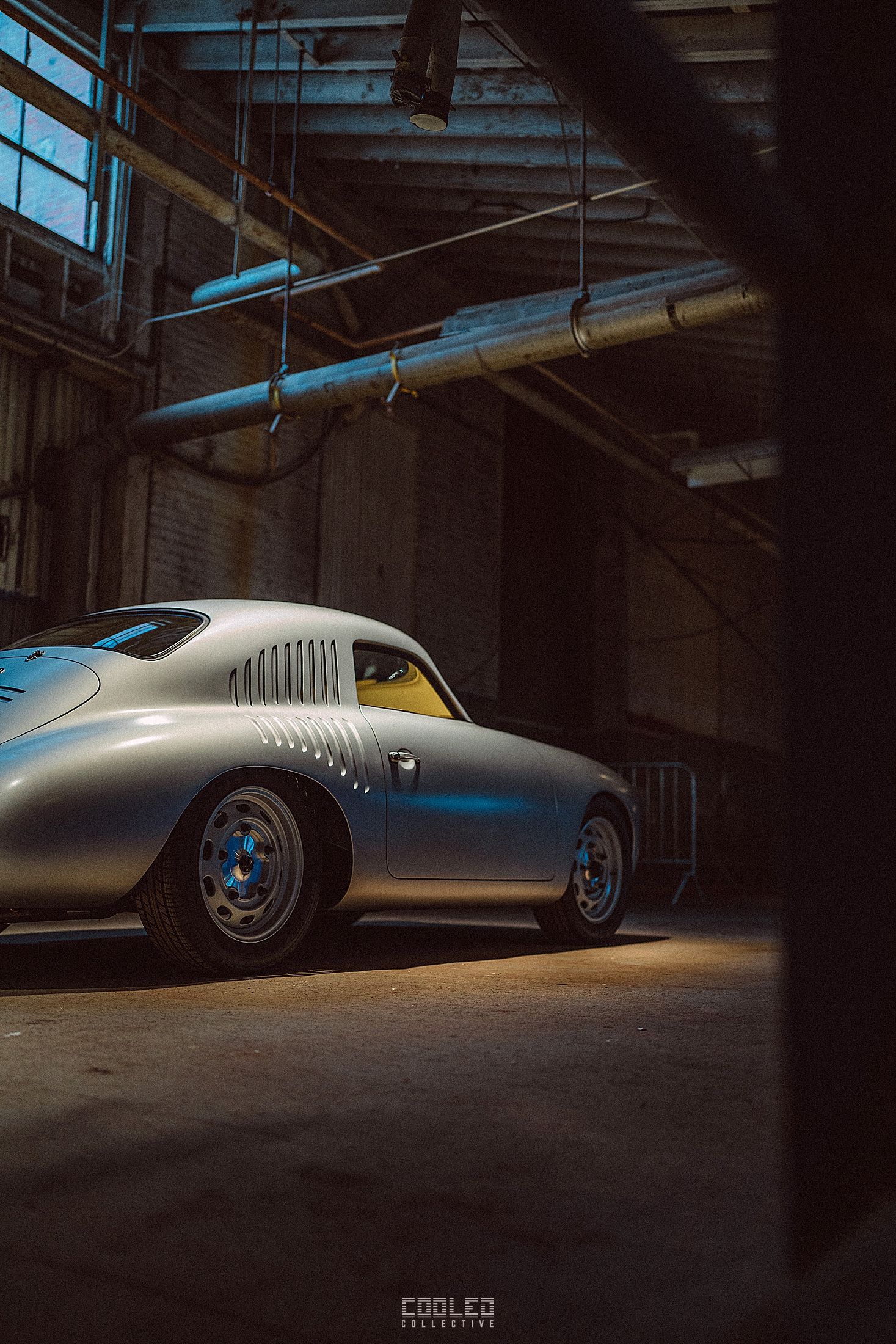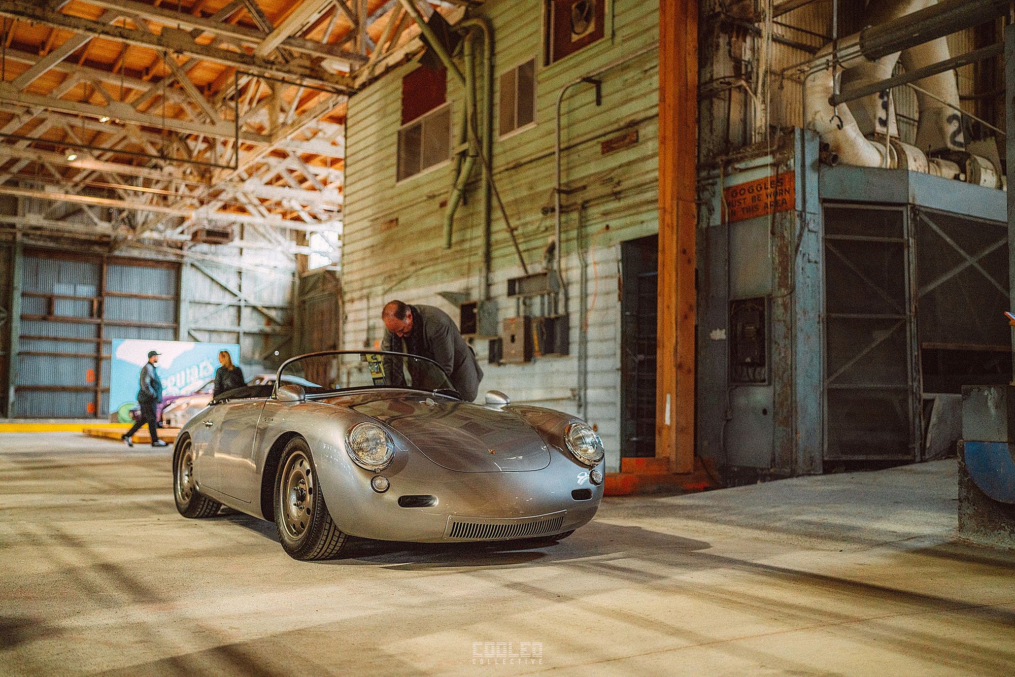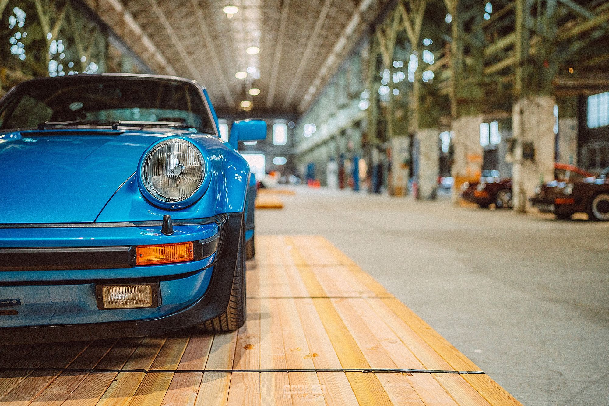 After a good 30 mins of shooting the yard, I ended up finding the gem of the show. A long and narrow warehouse where they probably built the naval ships. This space is everything a photographer longs for. High vaulted windows, lots of textures and colors, wide open space, large doors to control light.... just a sweet magical place. First car I see inside is John's 993 tucked away in a corner spot. A great spot if you ask me.