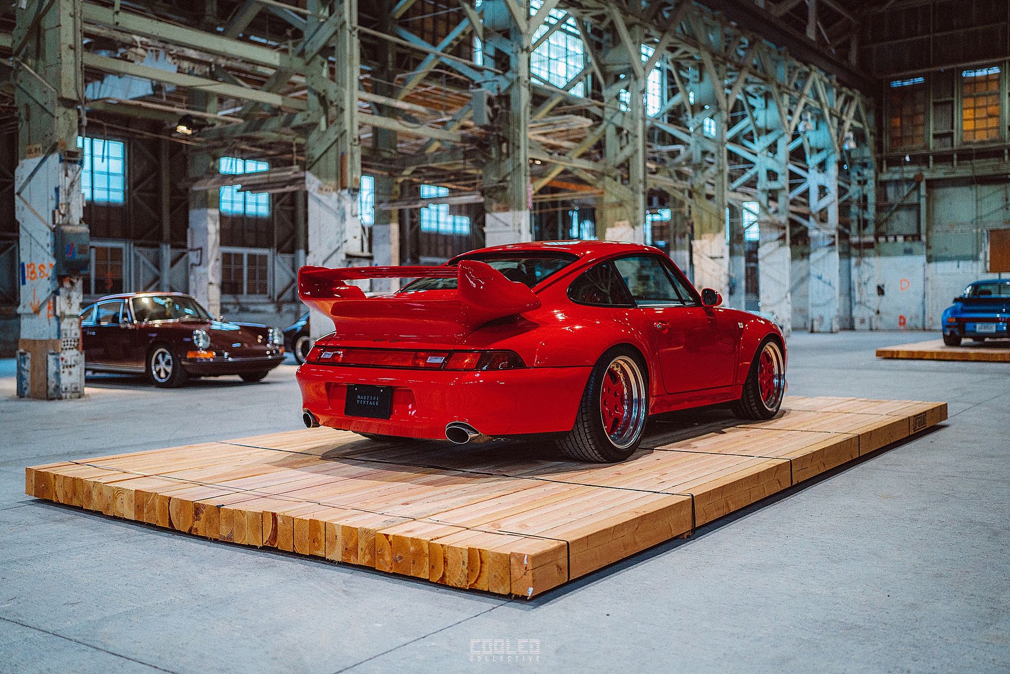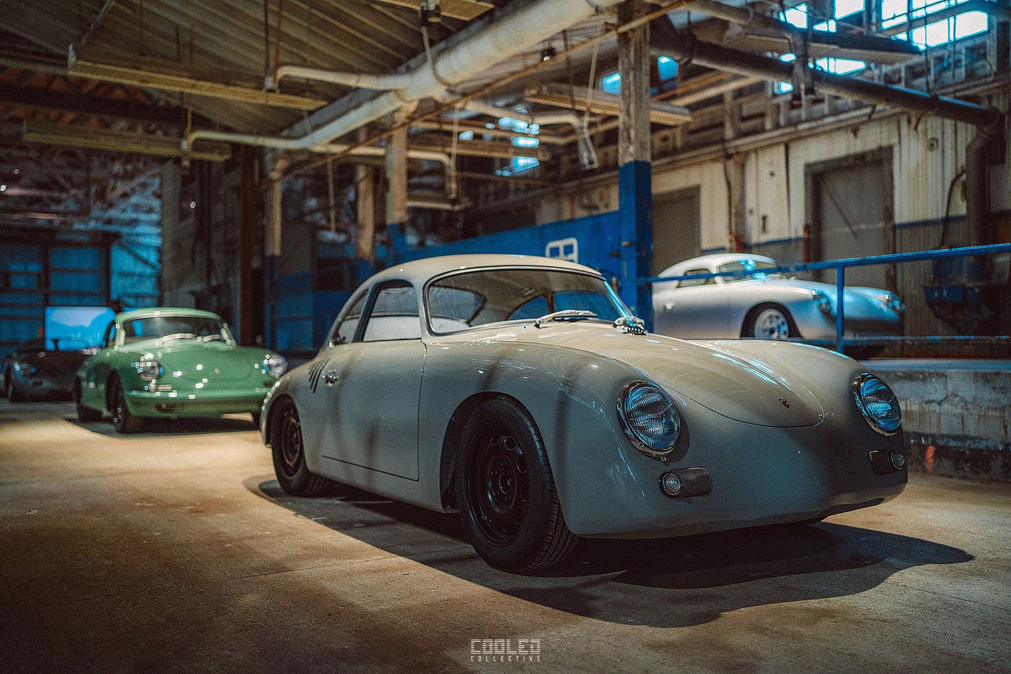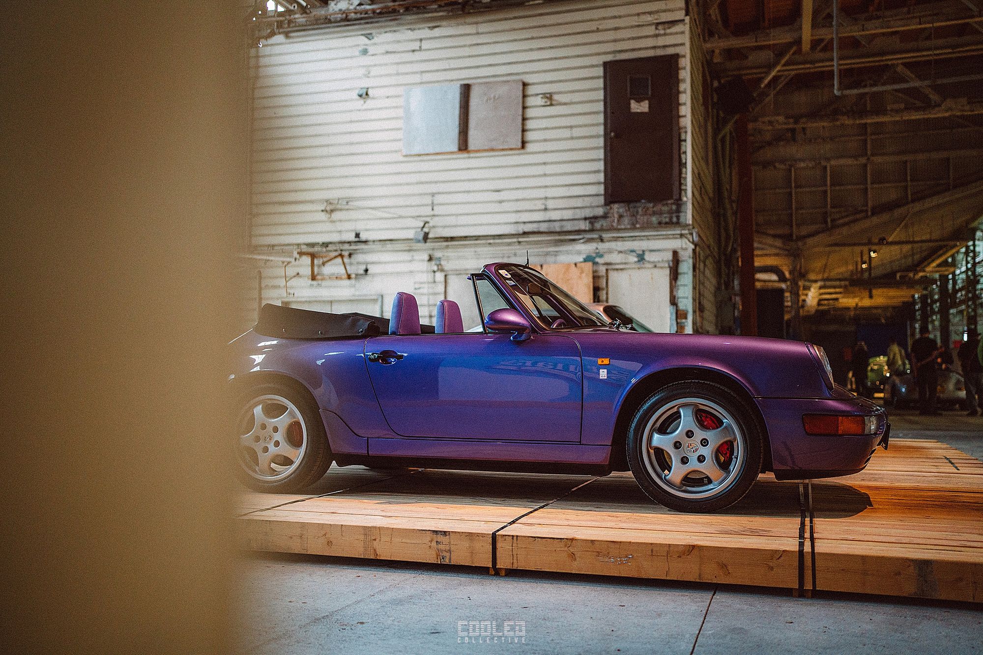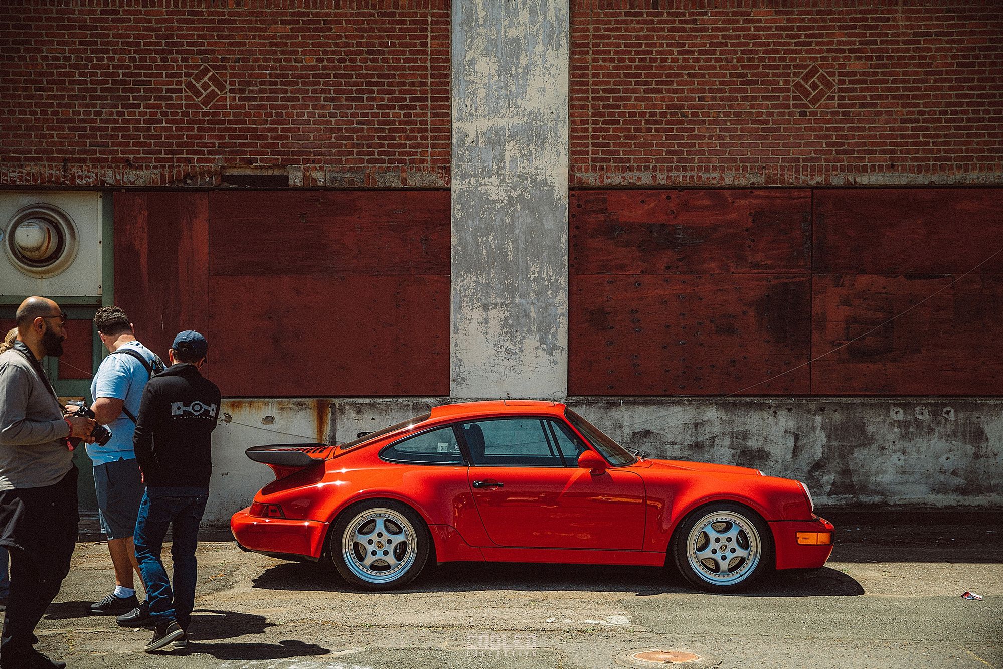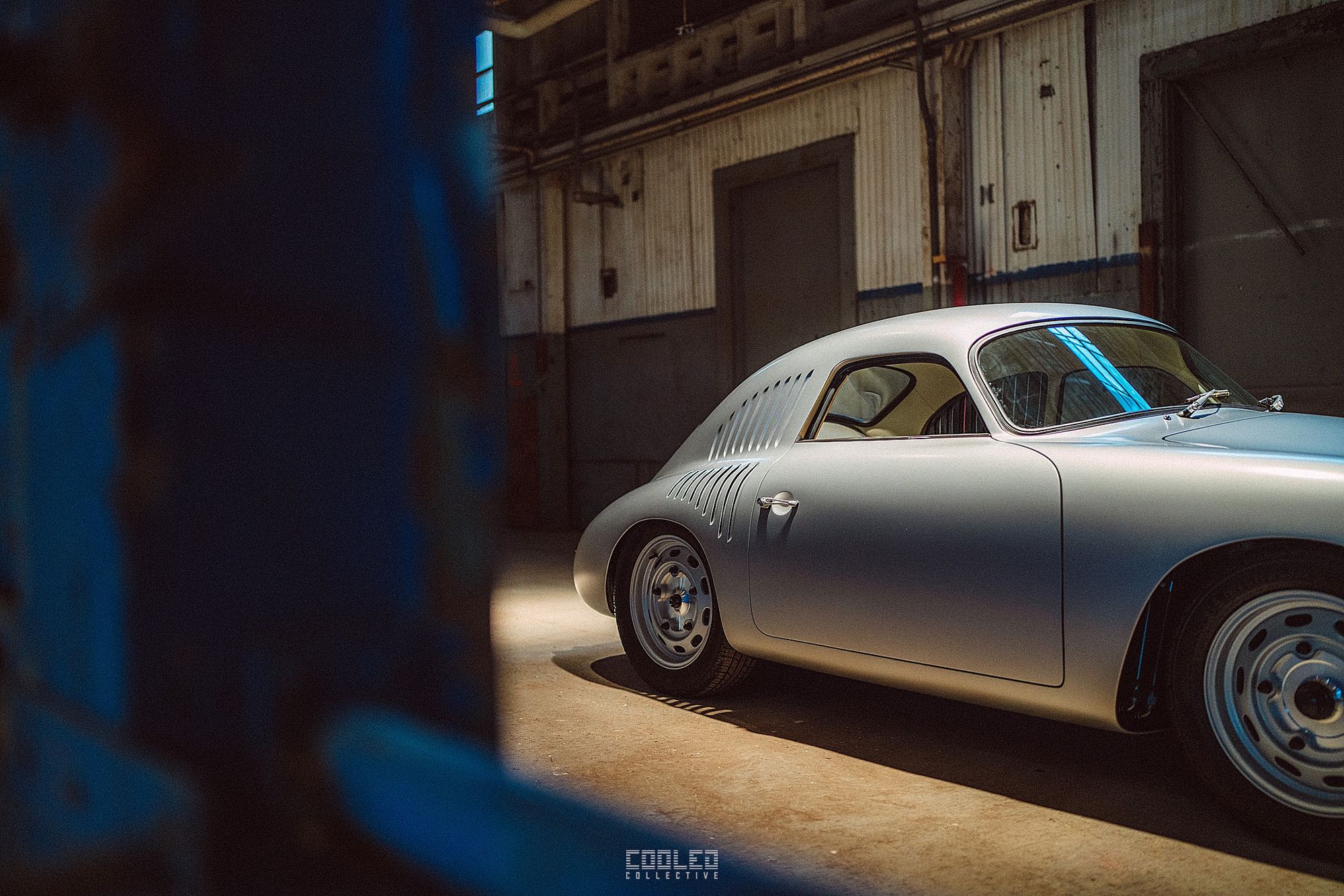 After a good 30 mins of shooting the yard, I ended up finding the gem of the show. A long and narrow warehouse where they probably built the naval ships. This space is everything a photographer longs for. High vaulted windows, lots of textures and colors, wide open space, large doors to control light.... just a sweet magical place. First car I see inside is John's 993 tucked away in a corner spot. A great spot if you ask me.
