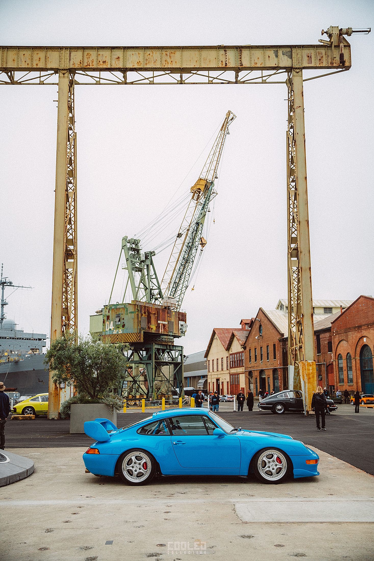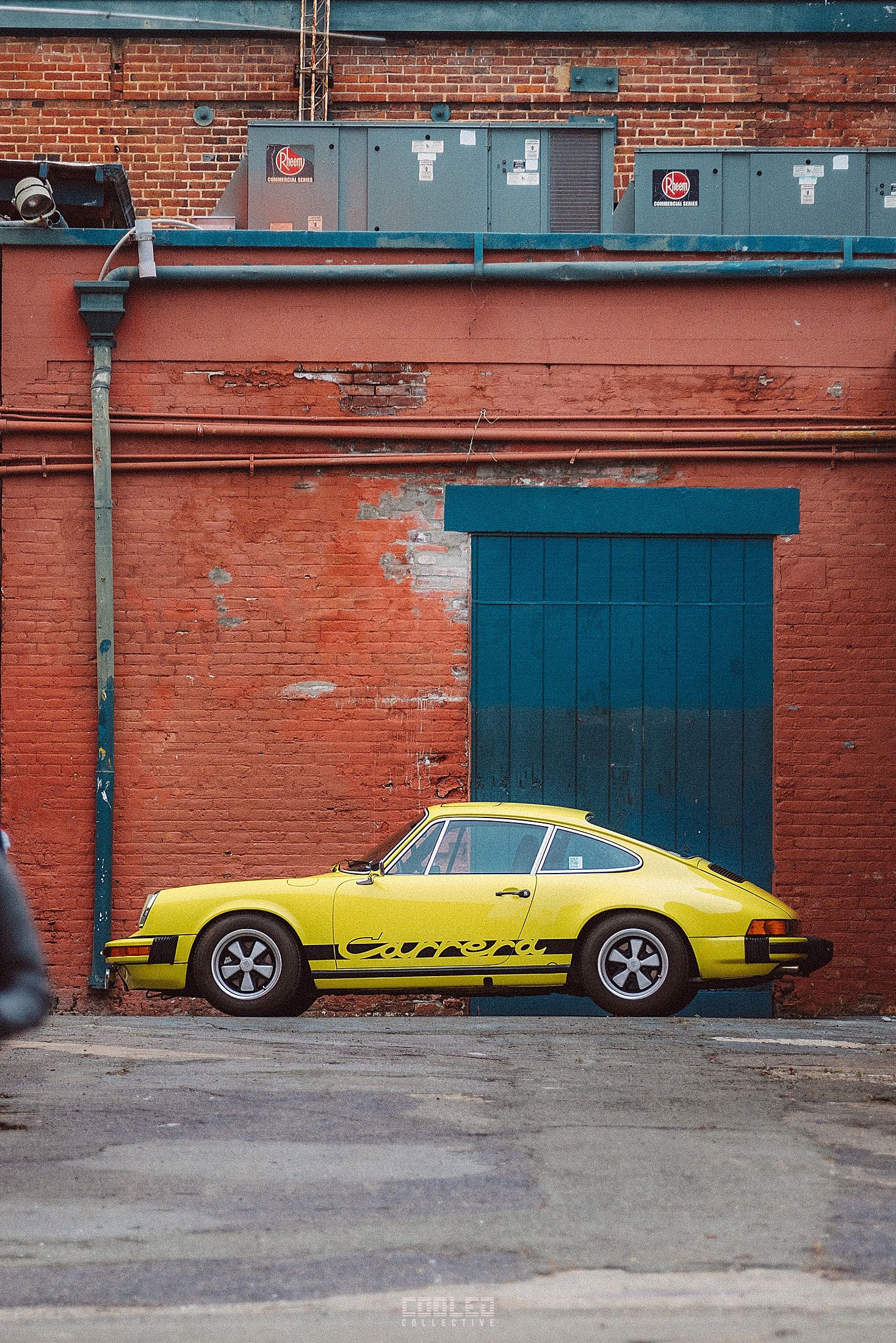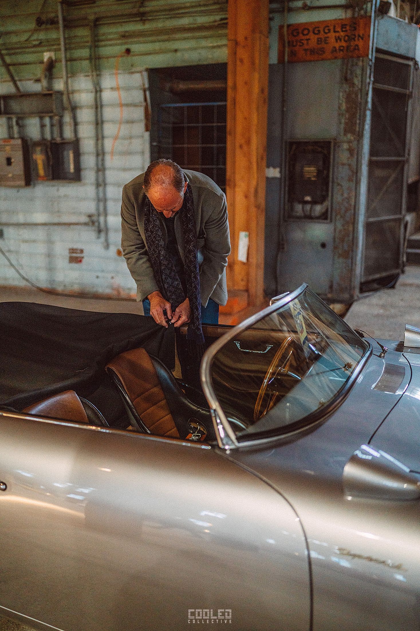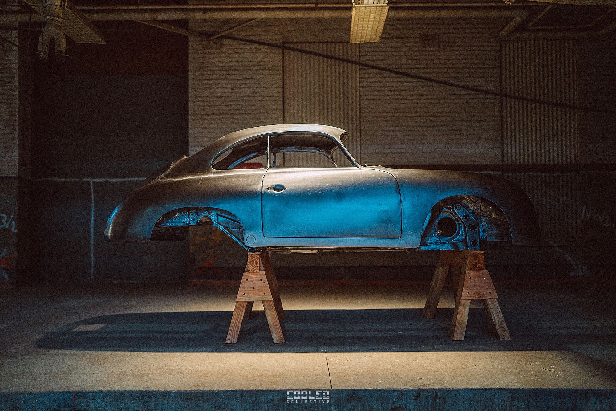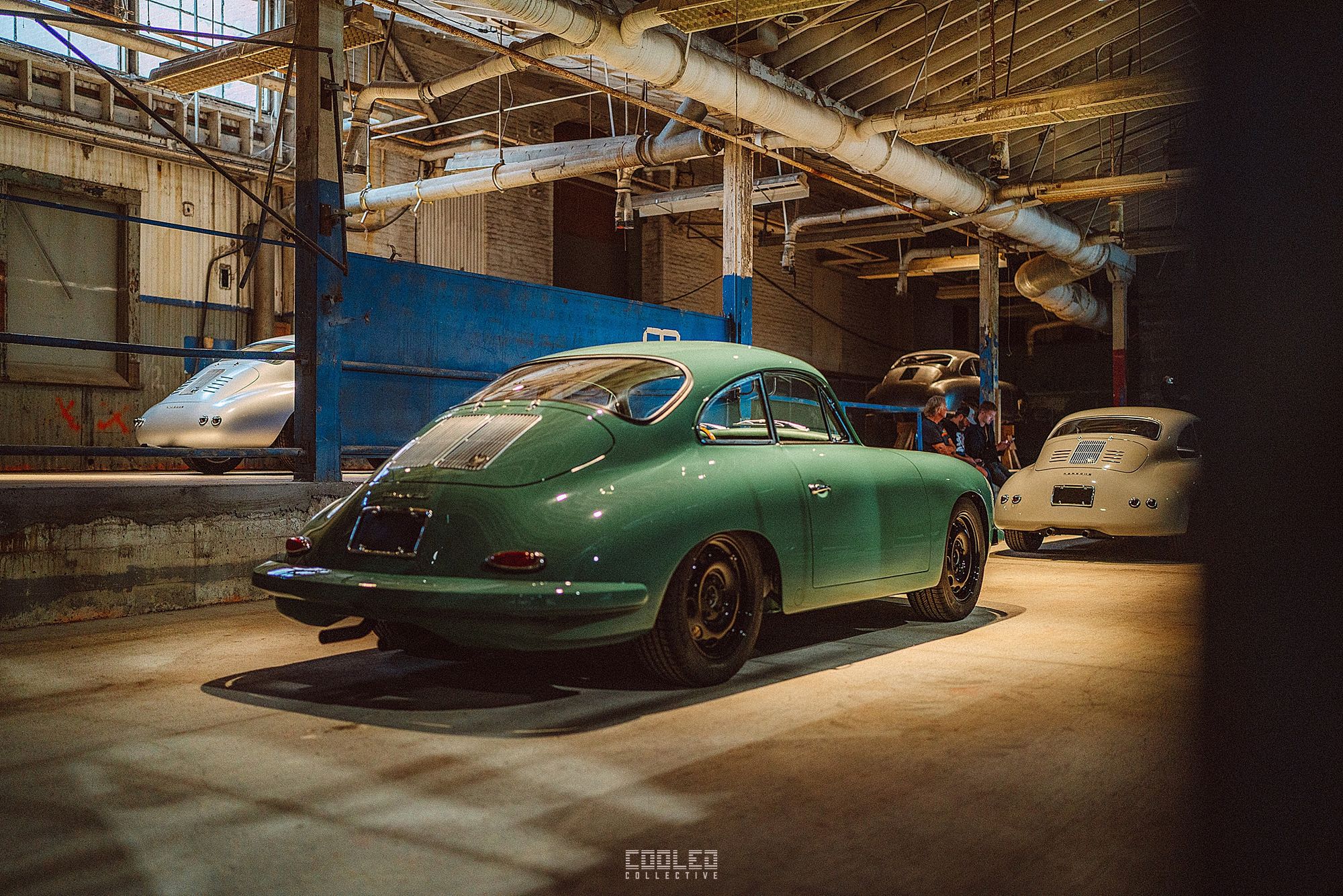 After a good 30 mins of shooting the yard, I ended up finding the gem of the show. A long and narrow warehouse where they probably built the naval ships. This space is everything a photographer longs for. High vaulted windows, lots of textures and colors, wide open space, large doors to control light.... just a sweet magical place. First car I see inside is John's 993 tucked away in a corner spot. A great spot if you ask me.