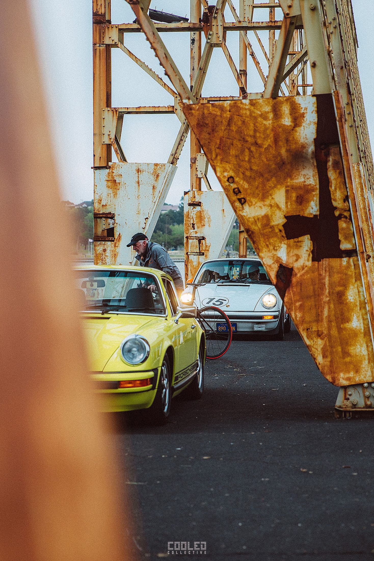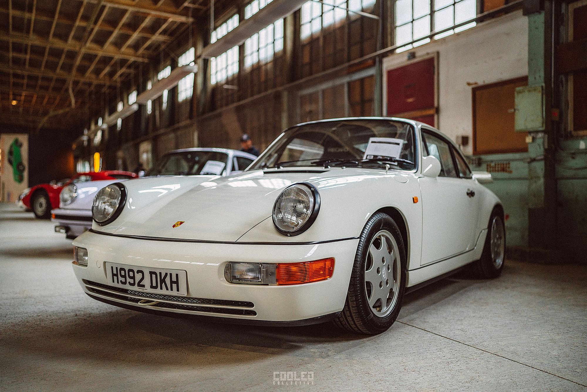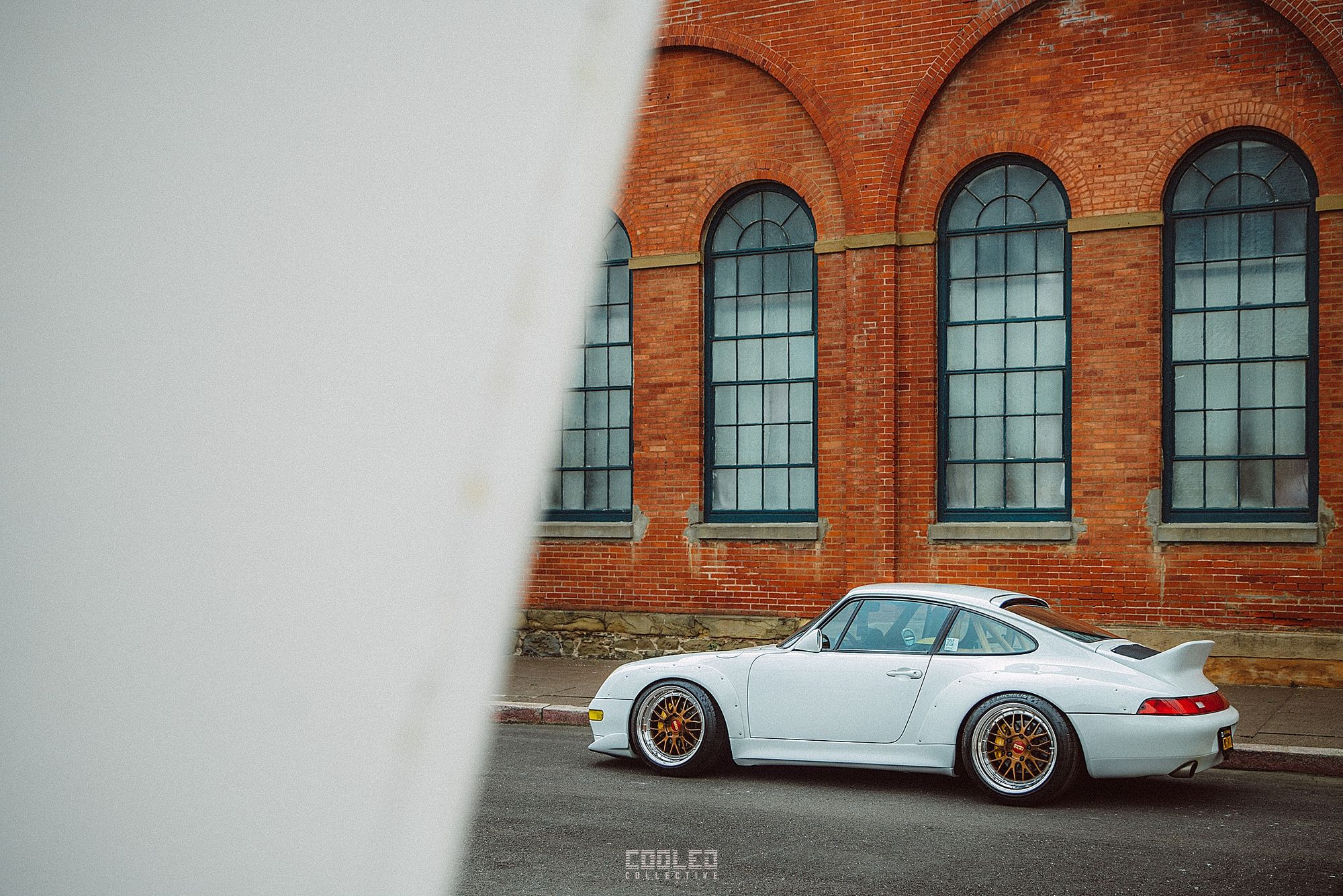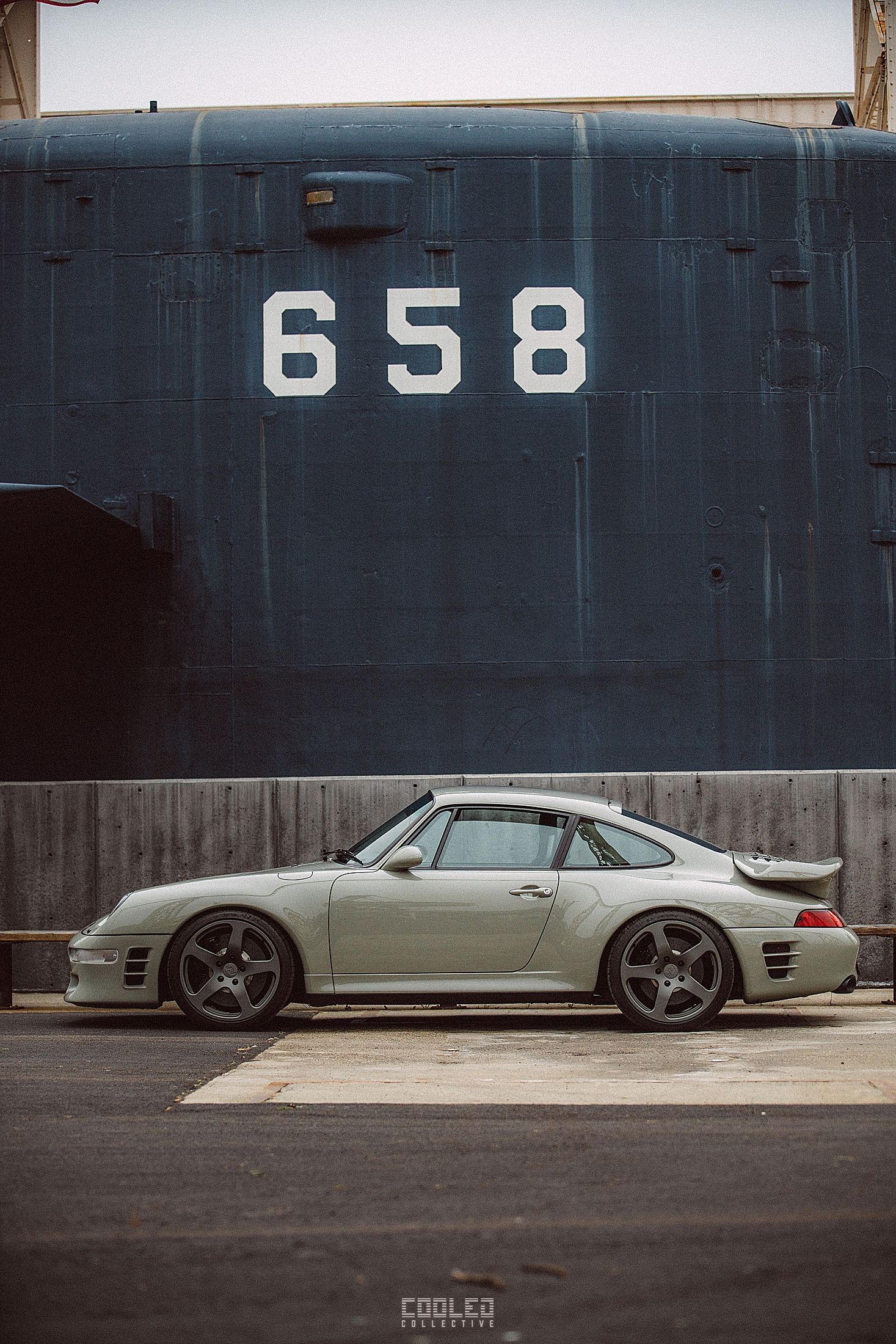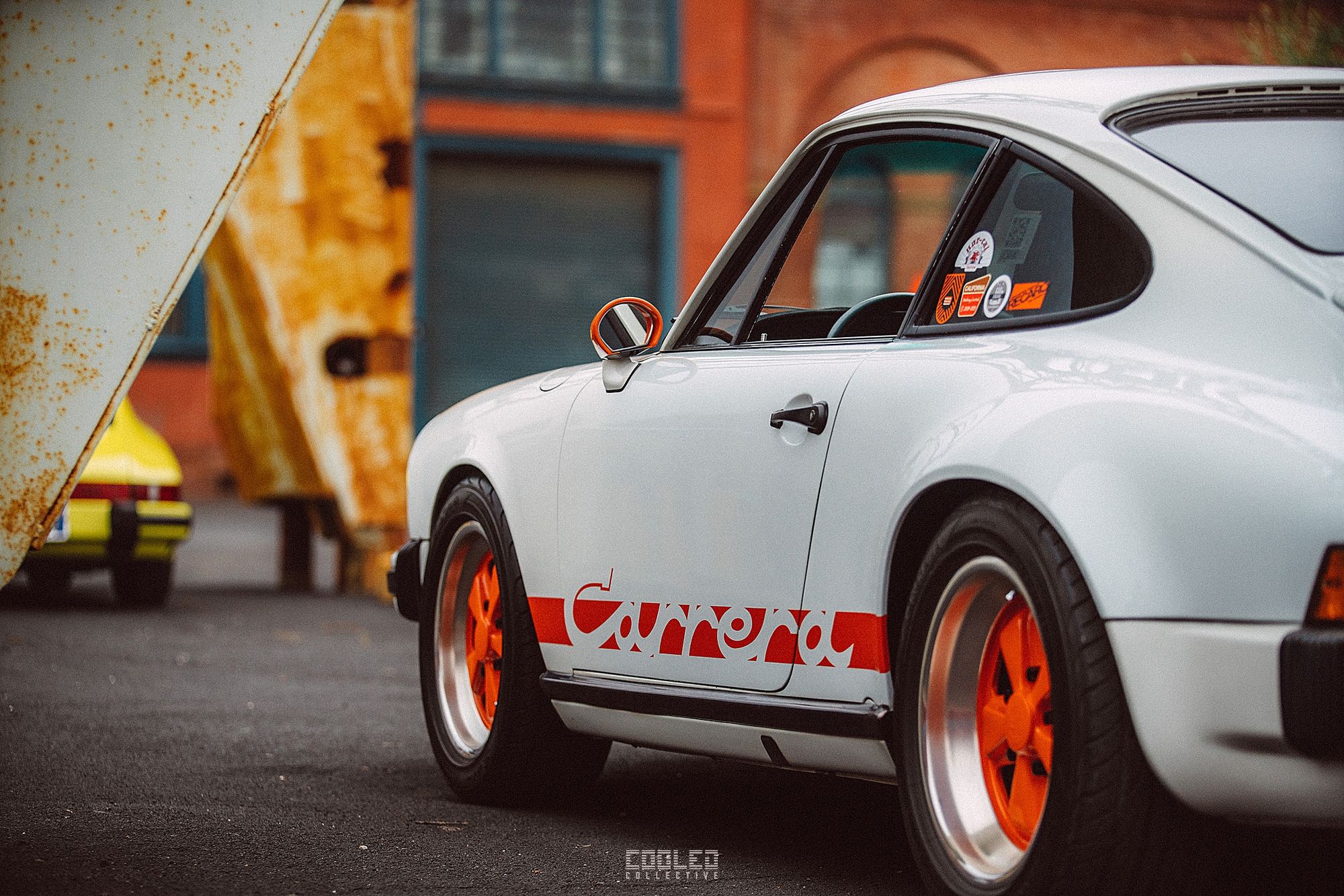 After a good 30 mins of shooting the yard, I ended up finding the gem of the show. A long and narrow warehouse where they probably built the naval ships. This space is everything a photographer longs for. High vaulted windows, lots of textures and colors, wide open space, large doors to control light.... just a sweet magical place. First car I see inside is John's 993 tucked away in a corner spot. A great spot if you ask me.