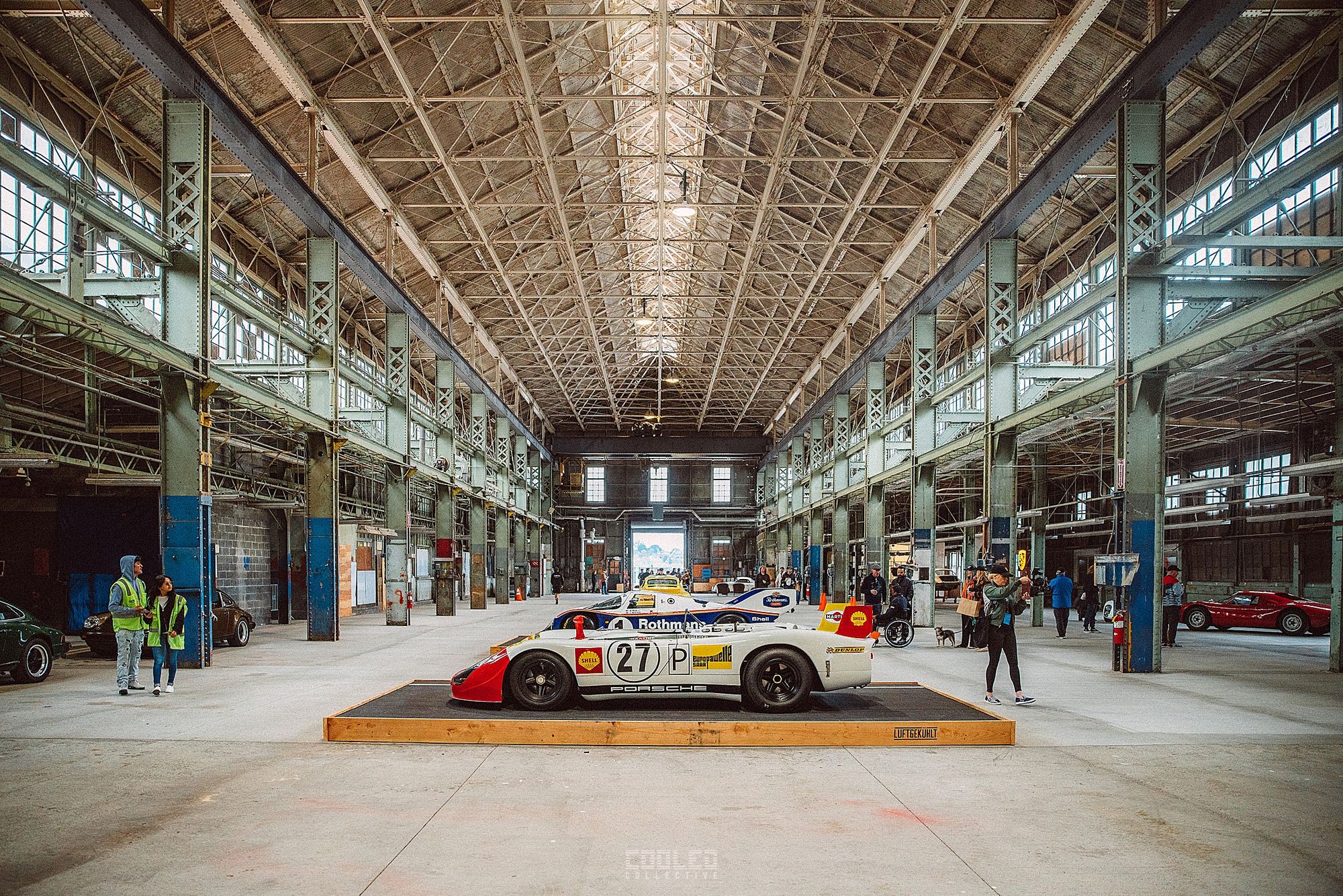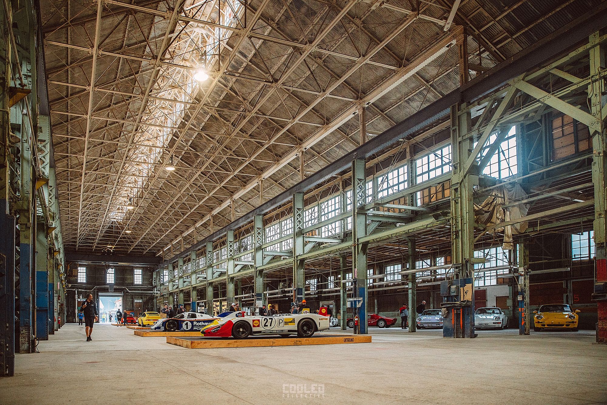 After I grabbed all my credentials, I just started following the line of cars leading into the venue. Already falling in love with the space, I just tried to document as much as I could before the crowds started coming in. As I mentioned before, photographers love wide open spaces because it is much easier to create depth with things spaced apart. With the scale of the cars, having large industrial buildings to control light and distance is everything.