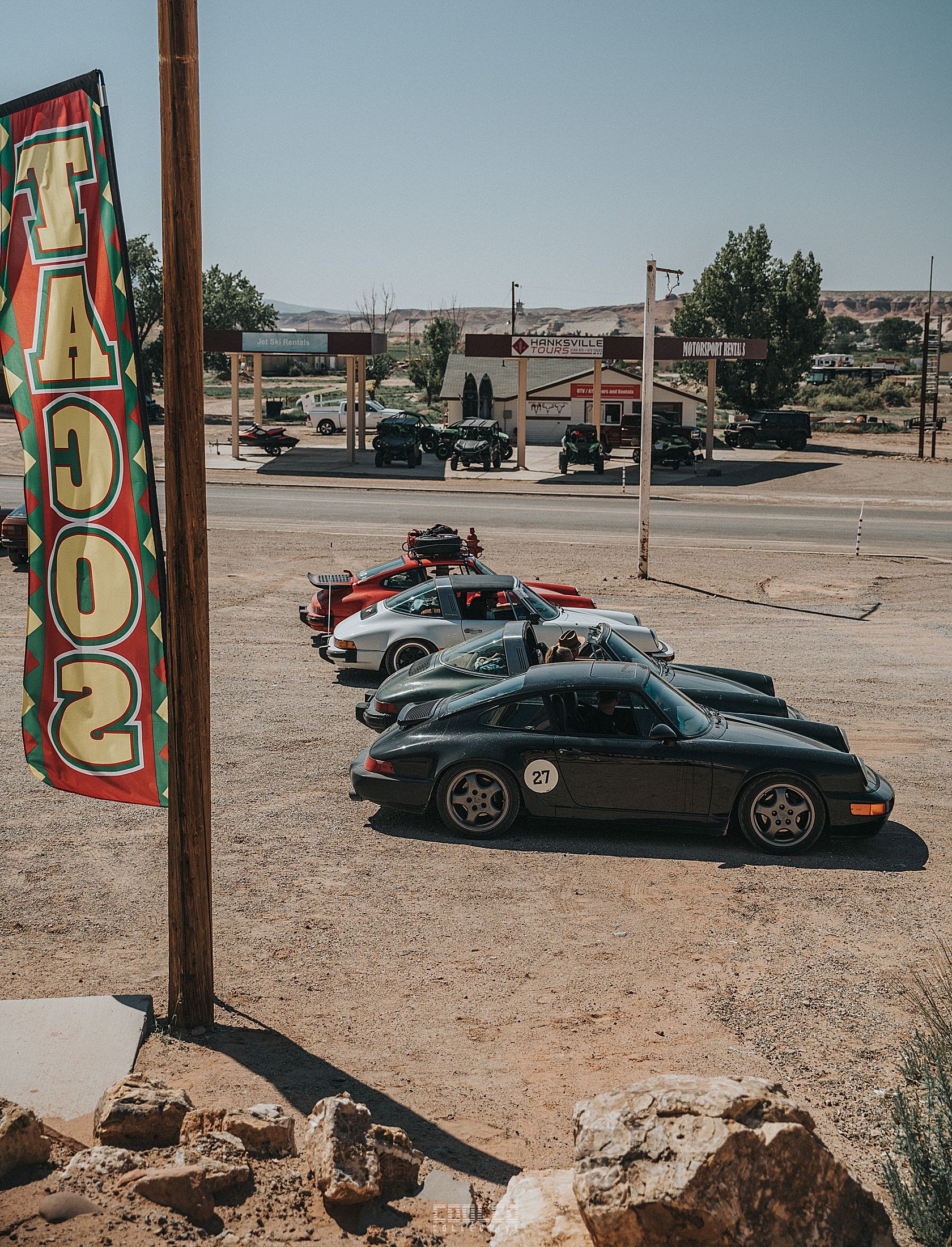As you can imagine, it was pitch black so there isn't much I can show you between the gas station and the meet up spot but let me tell you, about 40 mins later, there was a slight glimpse of light coming up from the east and those scenic landscapes of the Utah desert you see in calendars started to take form. It was quite the treat to be able to witness such things with hundreds of other car fanatics.