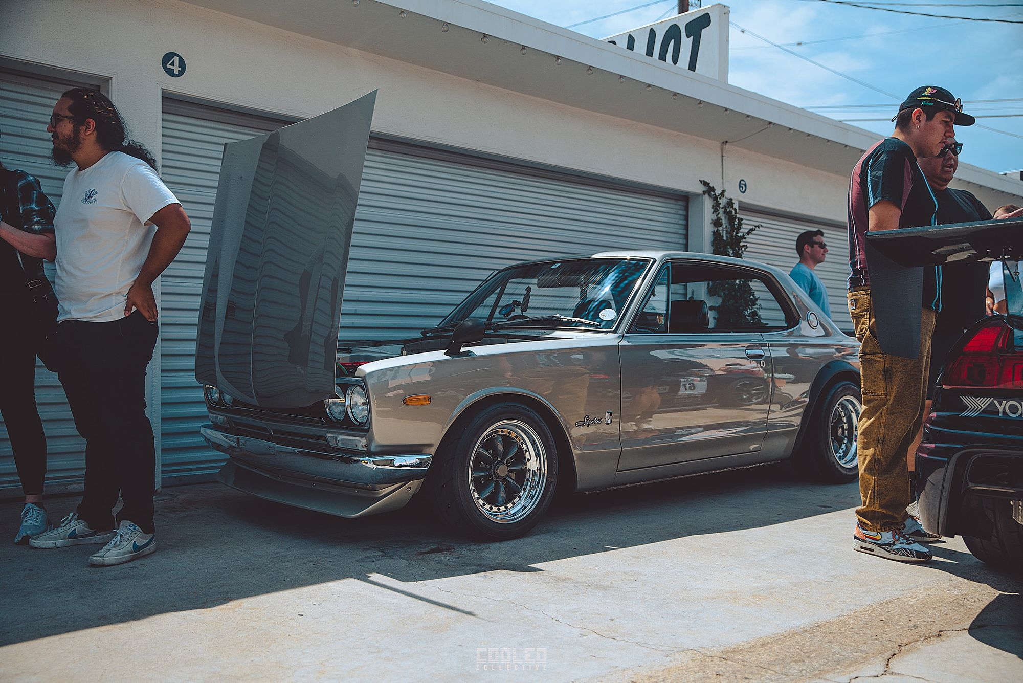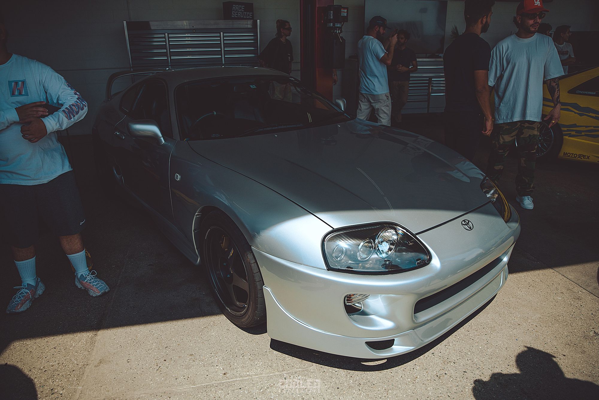 Brian from Top Rank always working and showing us the best of the Japanese imports. He brought in his Silver Mark IV Supra. Got a nice spot with a nice shadow splitting that hood.