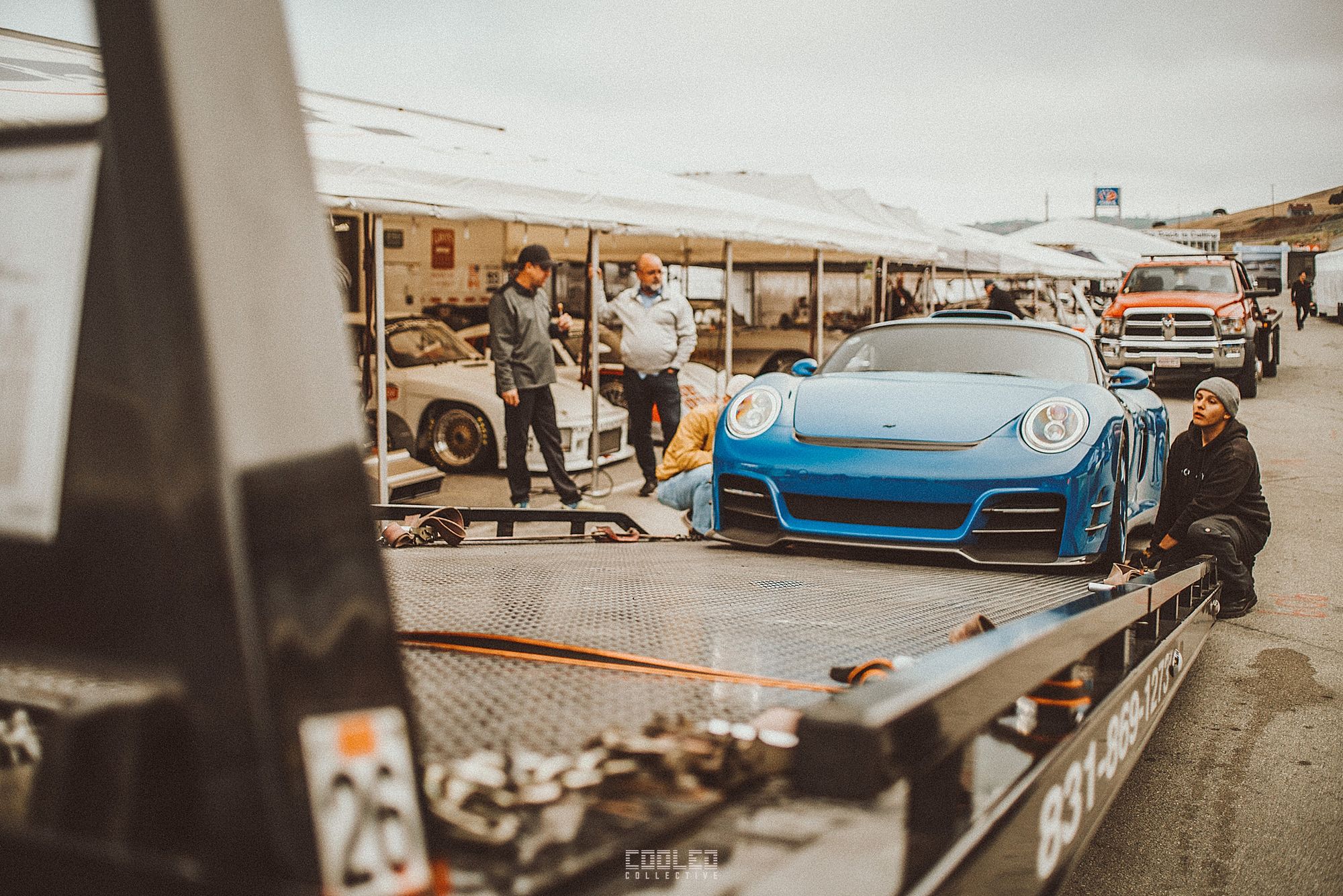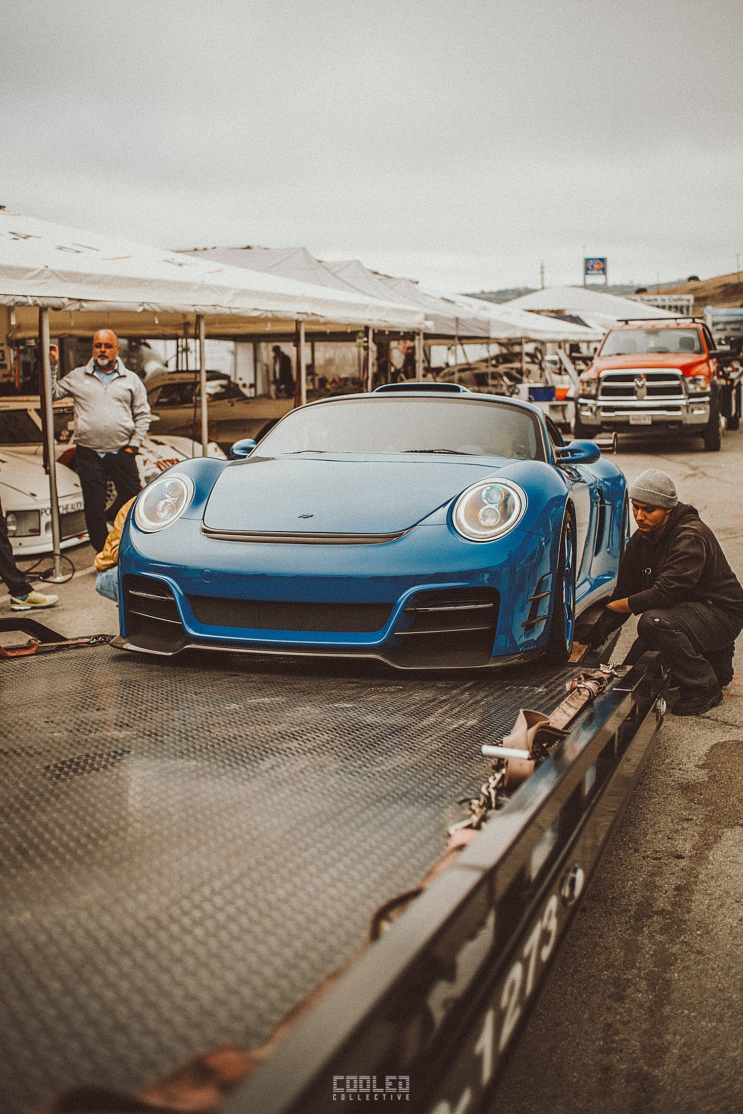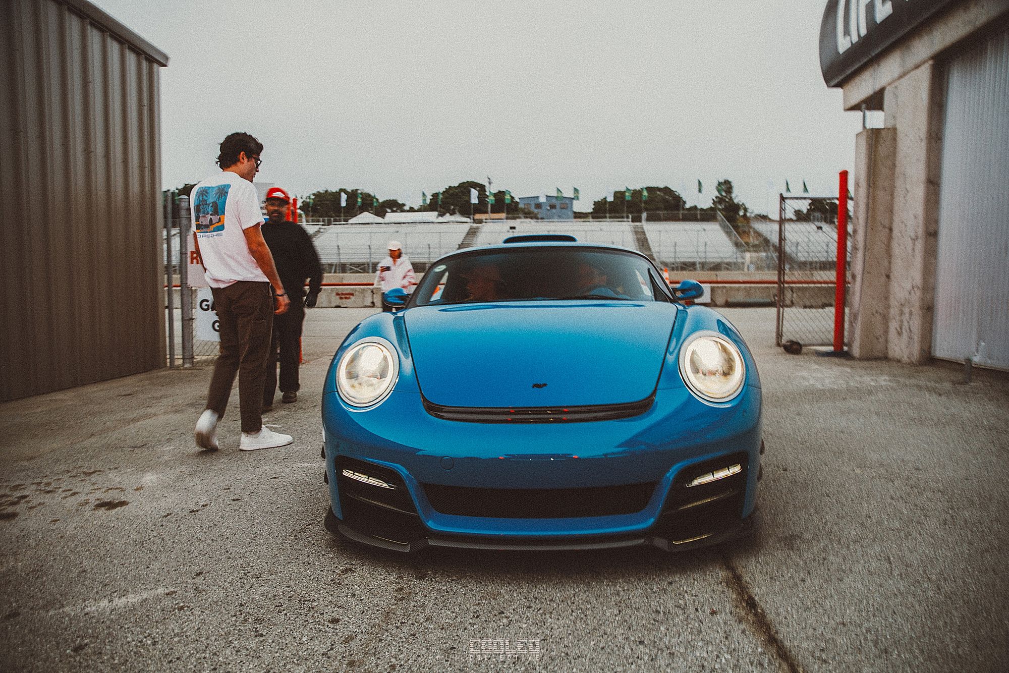 We met up with with the RUF crew at an undisclosed location at the airport and then loaded up the CTR3 Evo and made our way to the Laguna Seca Paddocks. We arrived as the day was winding down and a majority of the teams had left and were off to dinner. We unloaded, then took some photos while we were on standby and waiting to be cleared to drive on the track.