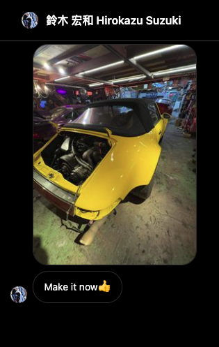 Very vague DM but then I got to ask if it was his car and he responded with, "RWB headquarter now" and then proceeds to ask me if I am free tomorrow and that he would ask Nakai-san if he was free for me and any friends of my friends to come and hang at RWB HQ. He gets back to me 15 mins later and says, Nakai is free and let me know how many friends are with you so I can see which car I need to bring.