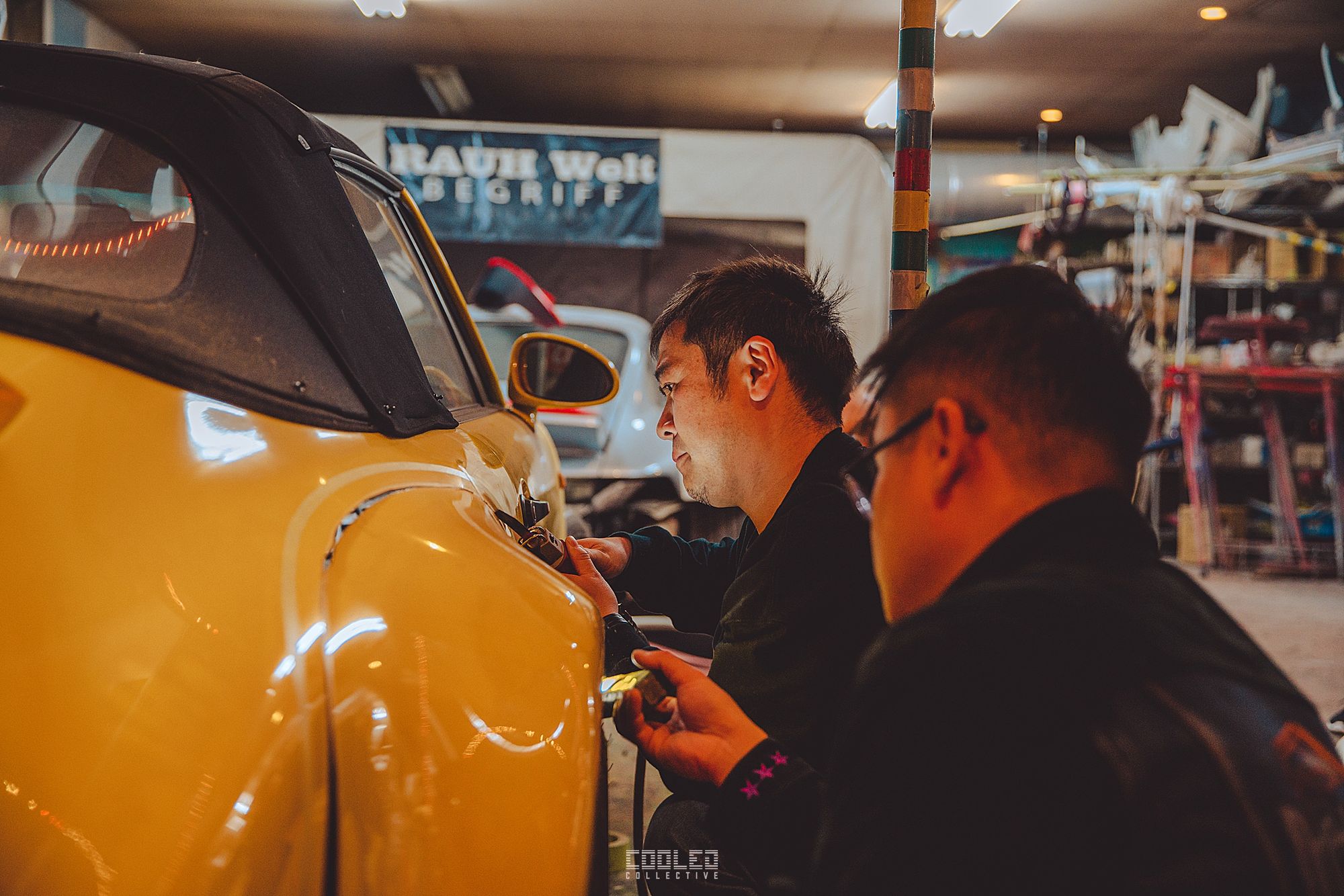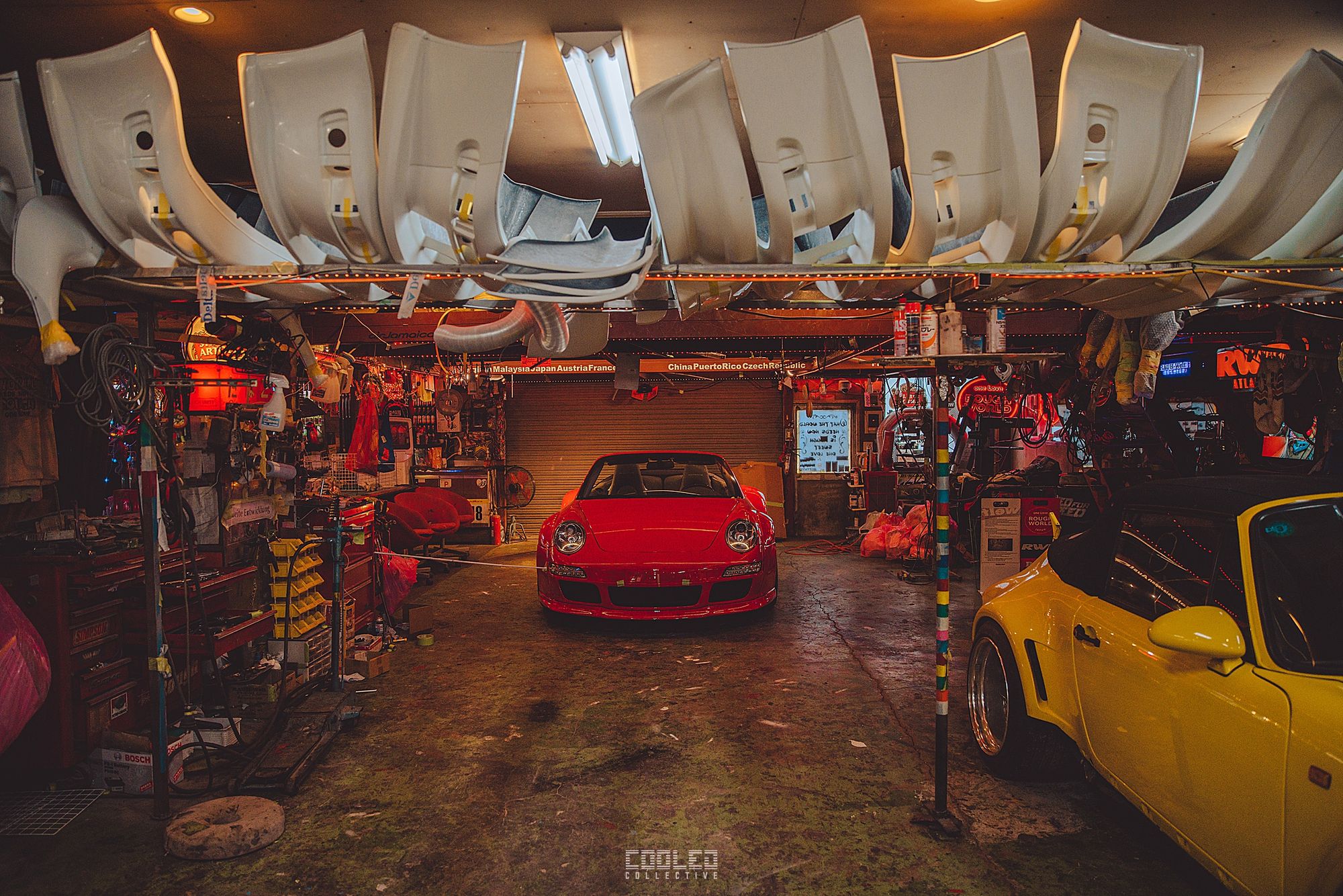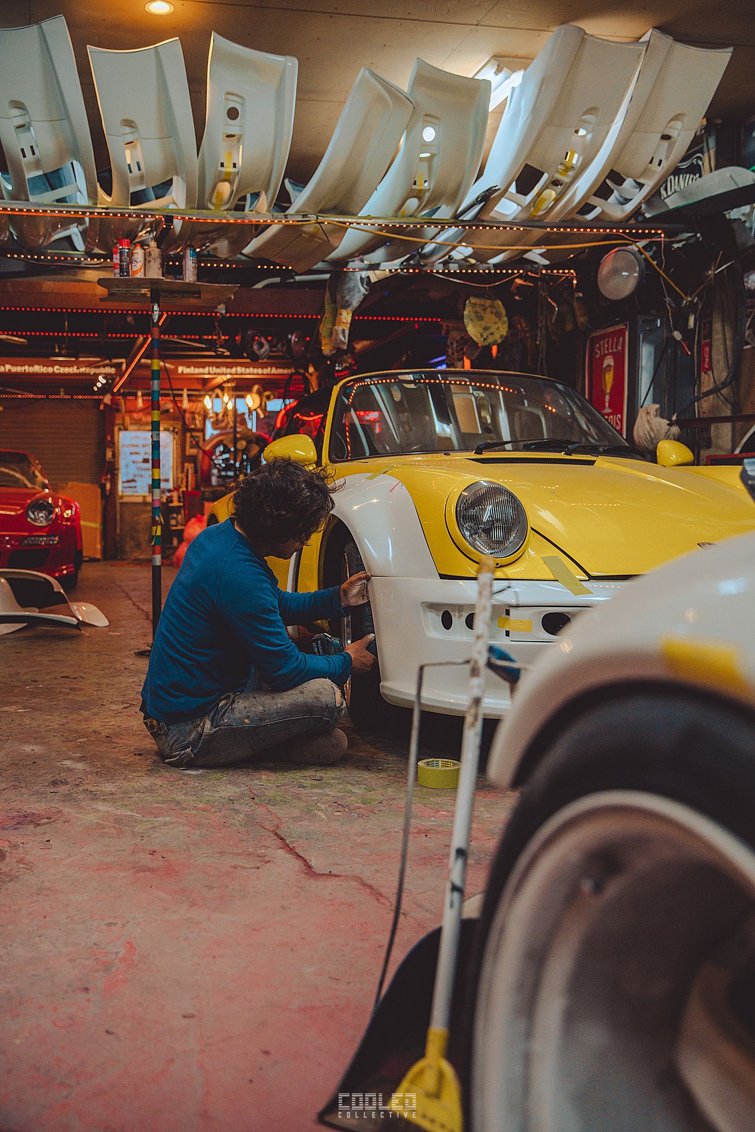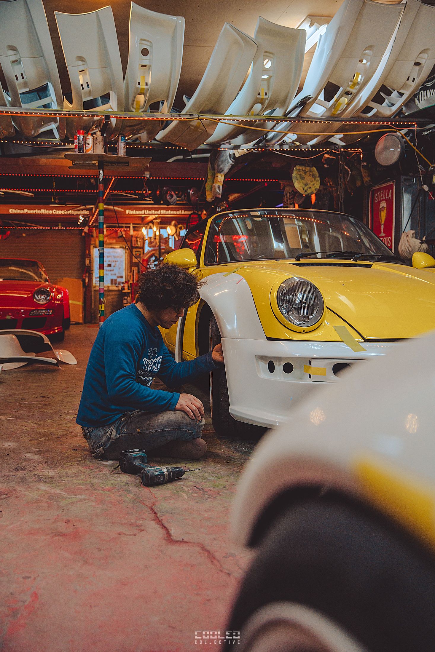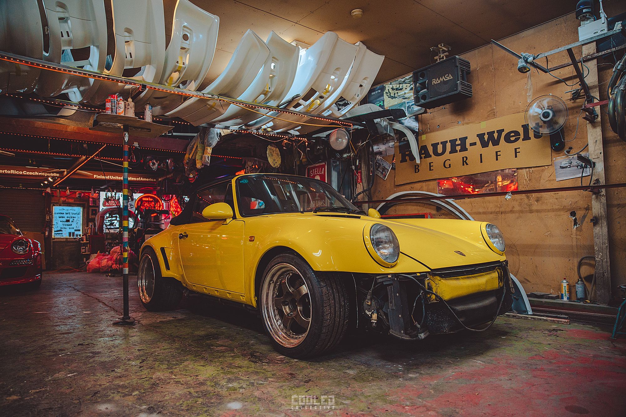While Hiro was working on his cab, Nakai went to work on a guards red 997 cab in the back of the yellow 911. The amount of 997 going under the knife is quite staggering as that is the main focus for RWB at this time.