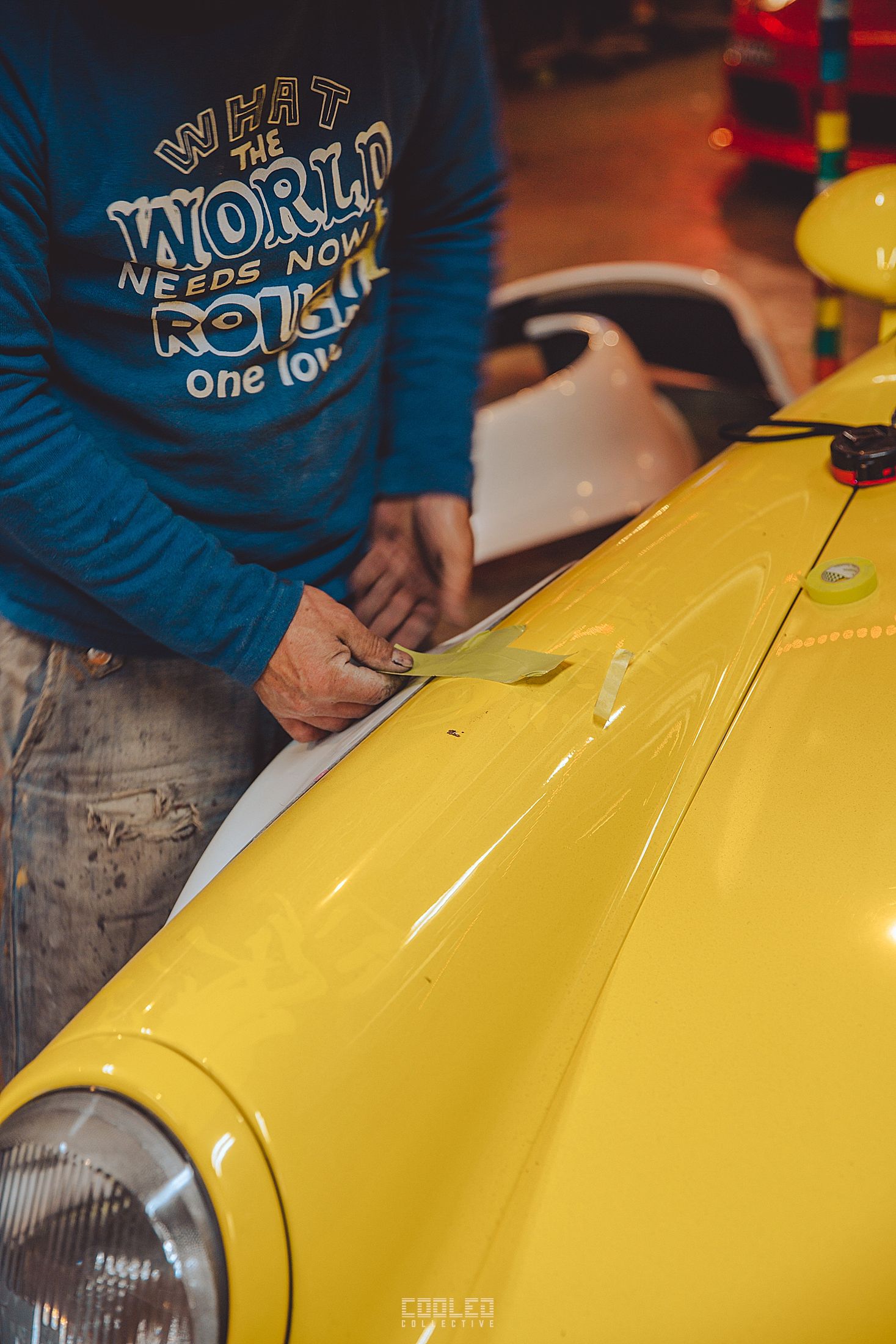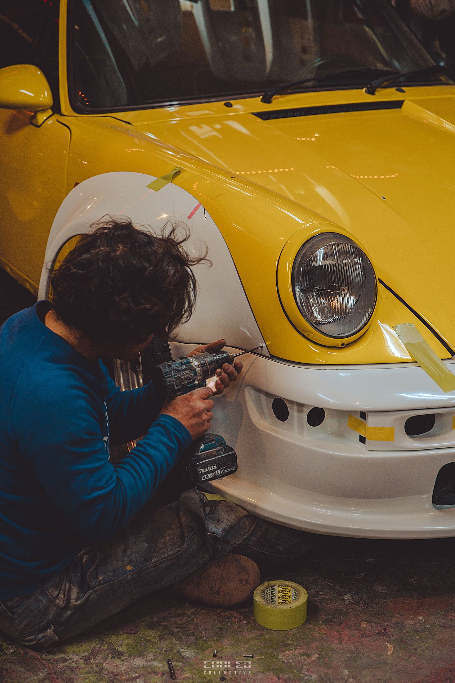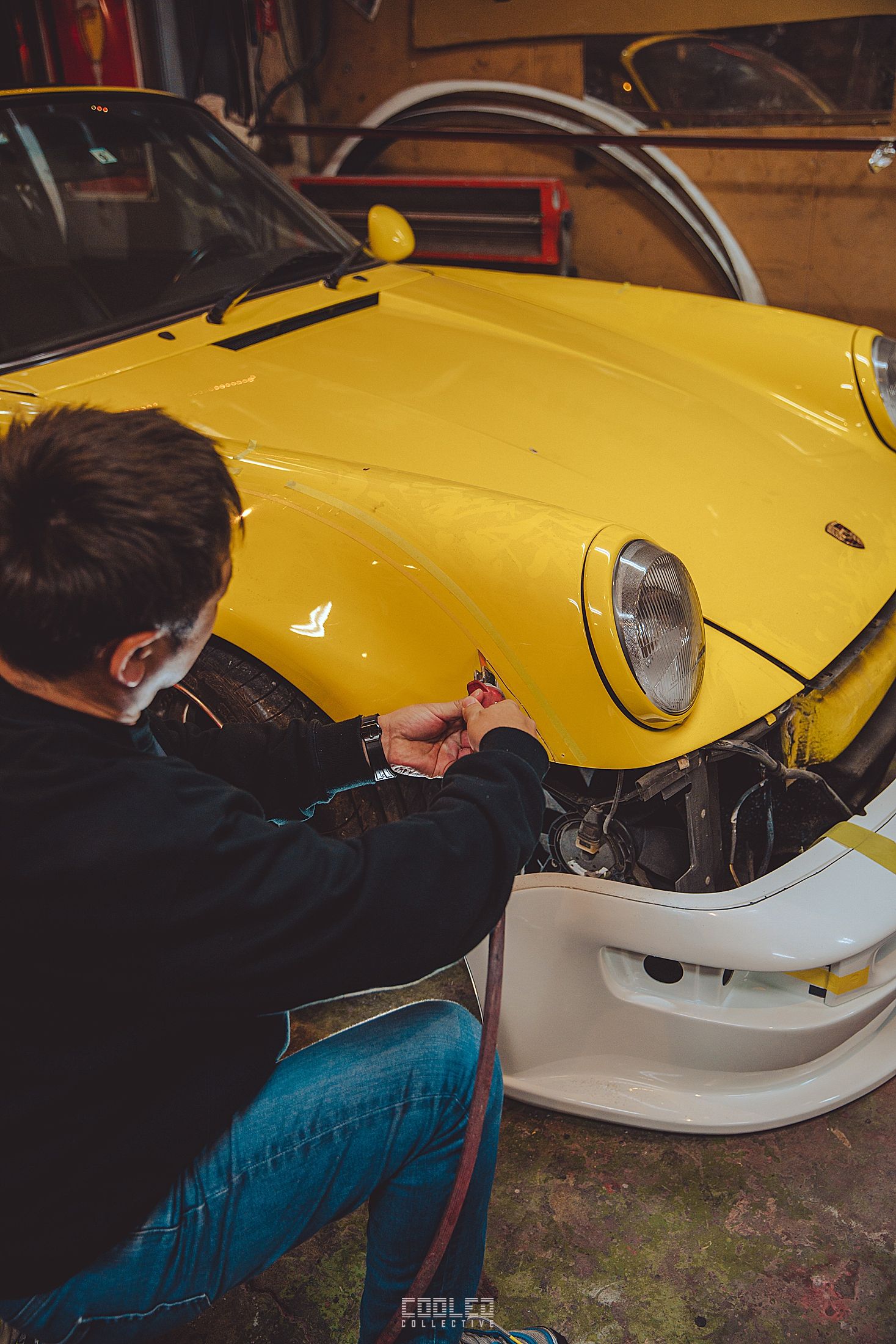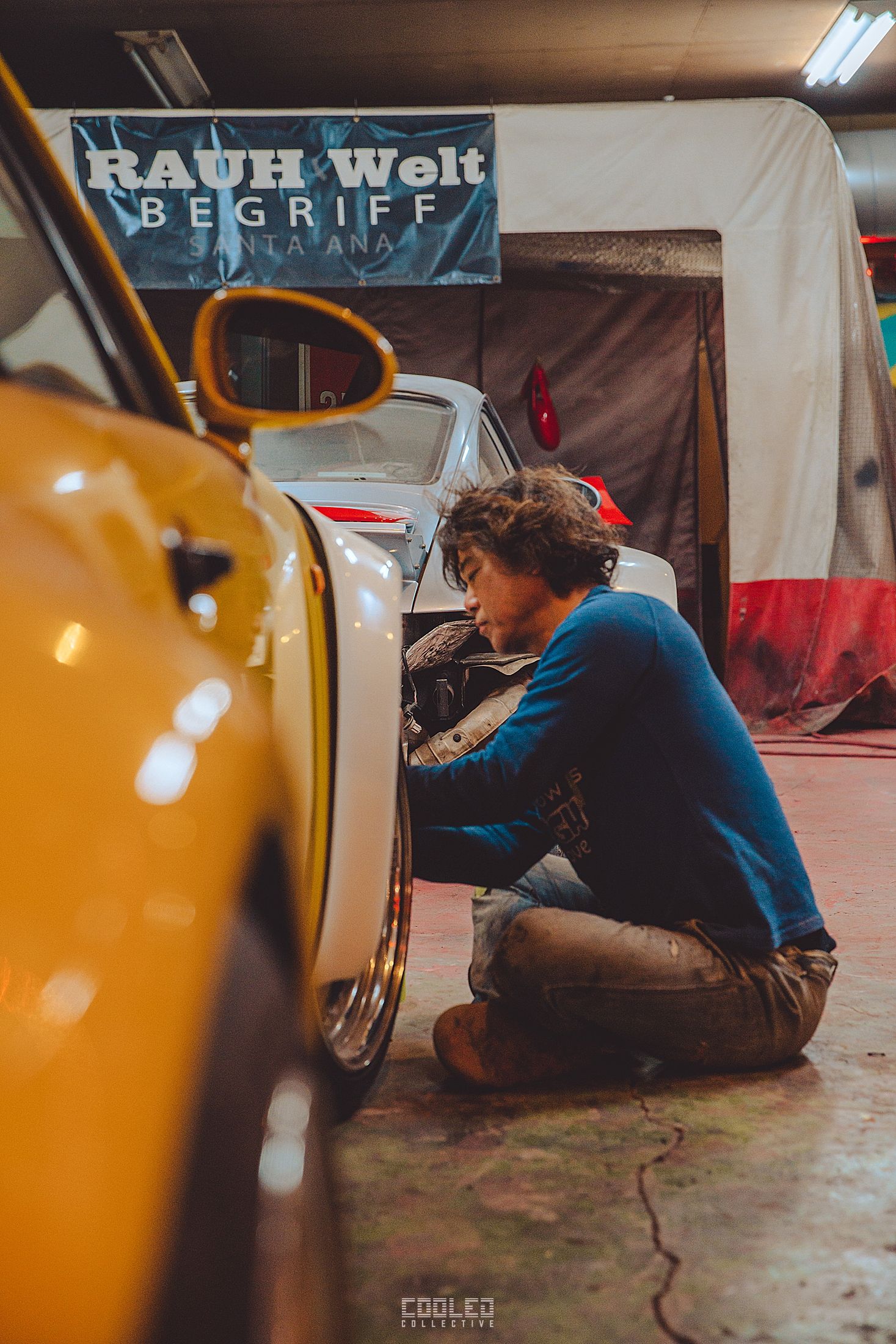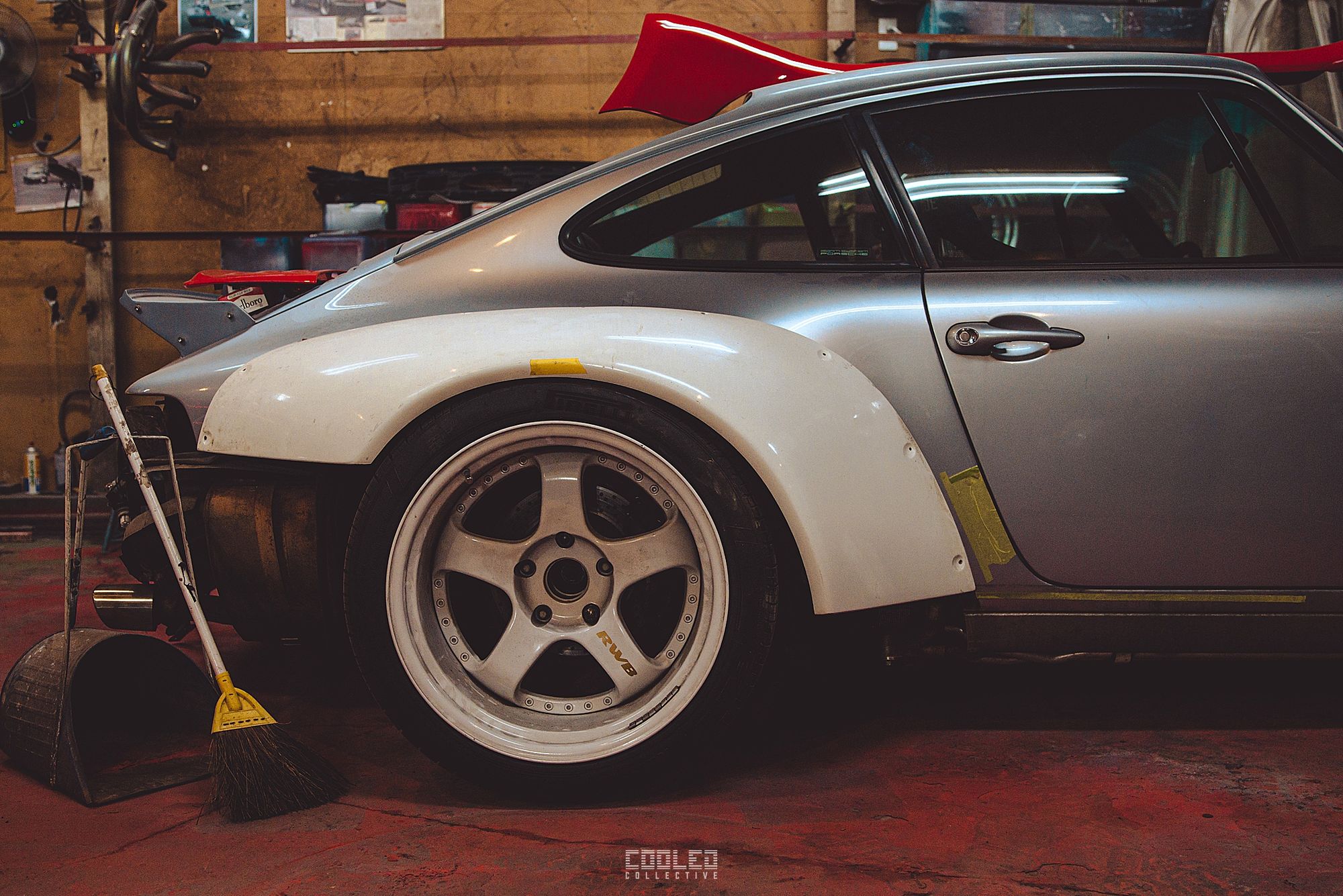 While Hiro was working on his cab, Nakai went to work on a guards red 997 cab in the back of the yellow 911. The amount of 997 going under the knife is quite staggering as that is the main focus for RWB at this time.
