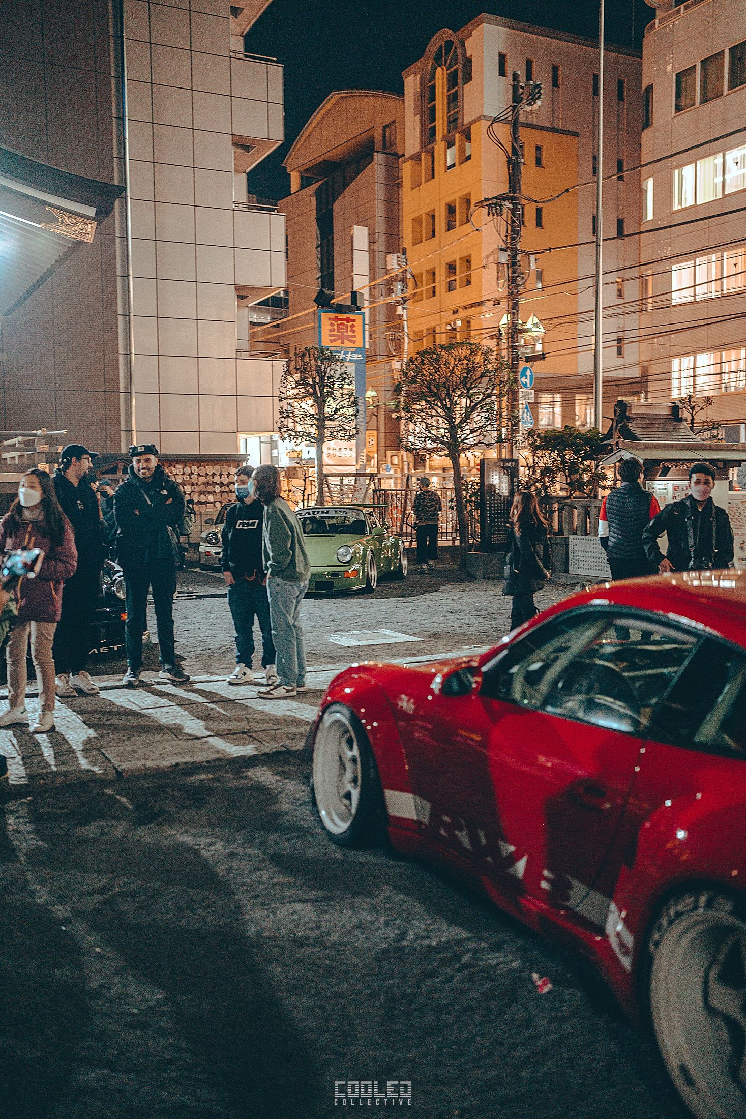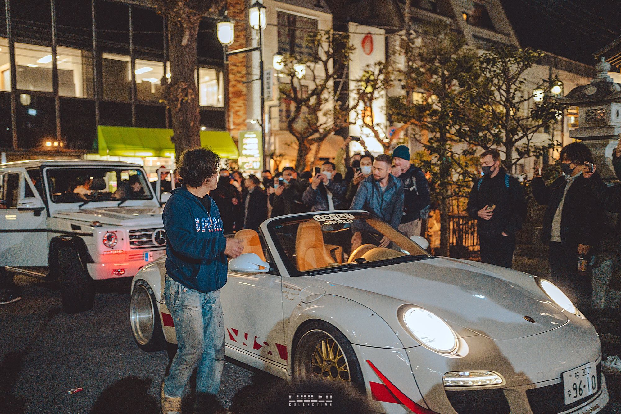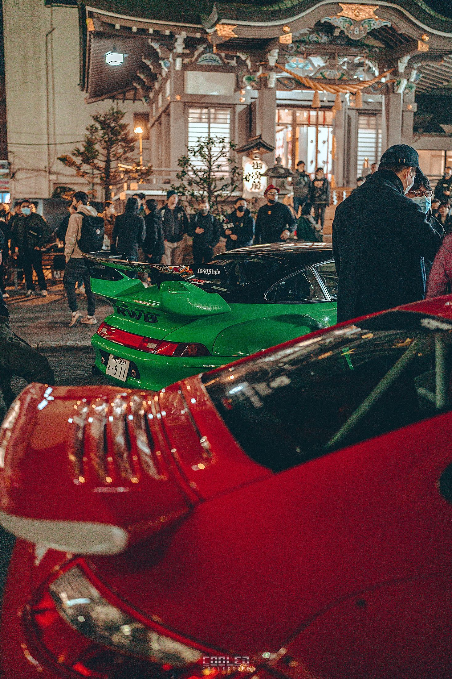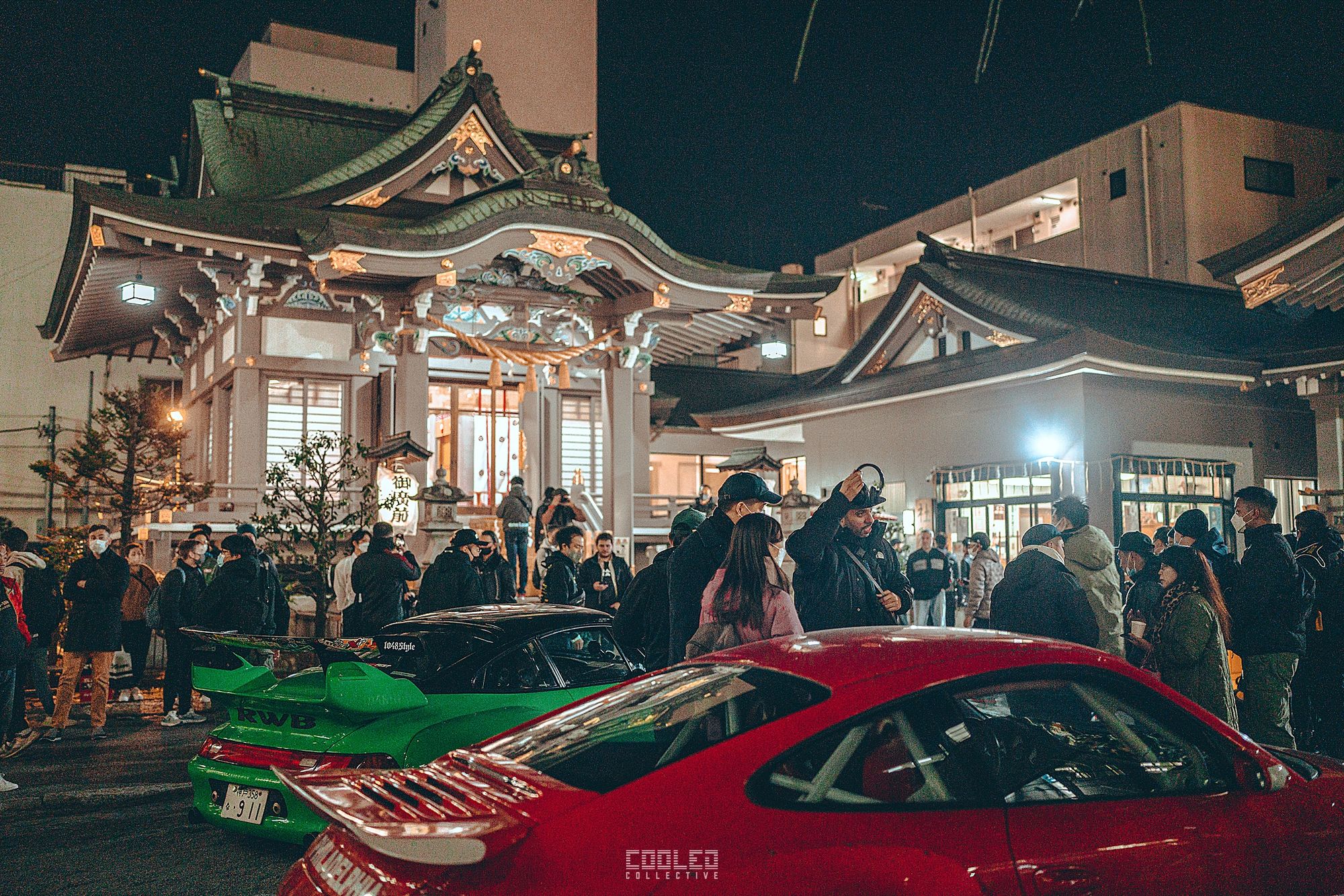 We pulled up to the shrine when it was already dark and a majority of the RWBs were already parked. A good sized crowd gathered and only continued to grow throughout the night. The location, although small was a perfect venue as it hosted the size of the crowd and kept things compact. Plenty of lighting to make it interesting. If you take a closer look throughout the crowd, you can see all sorts of high level social media and automotive cultural icons.