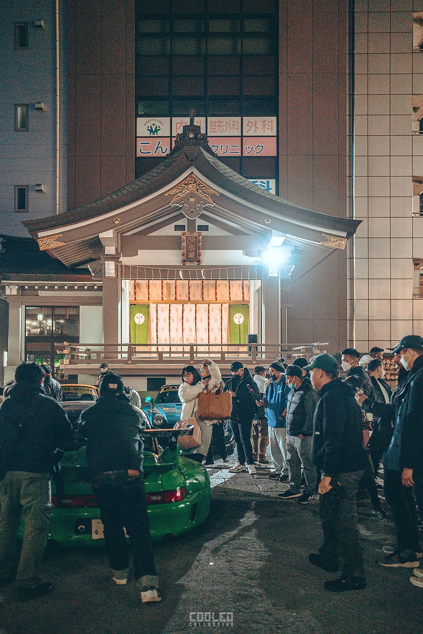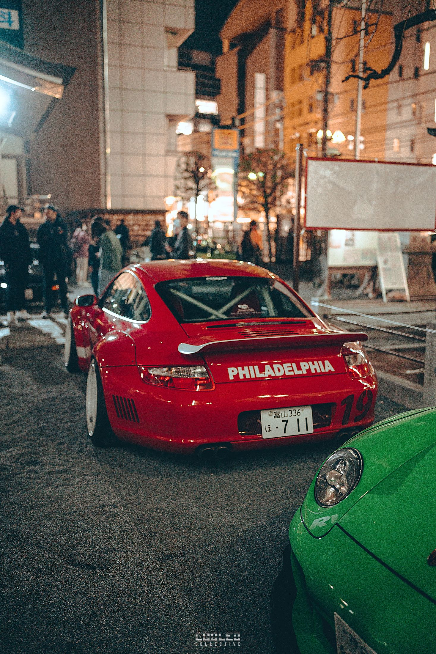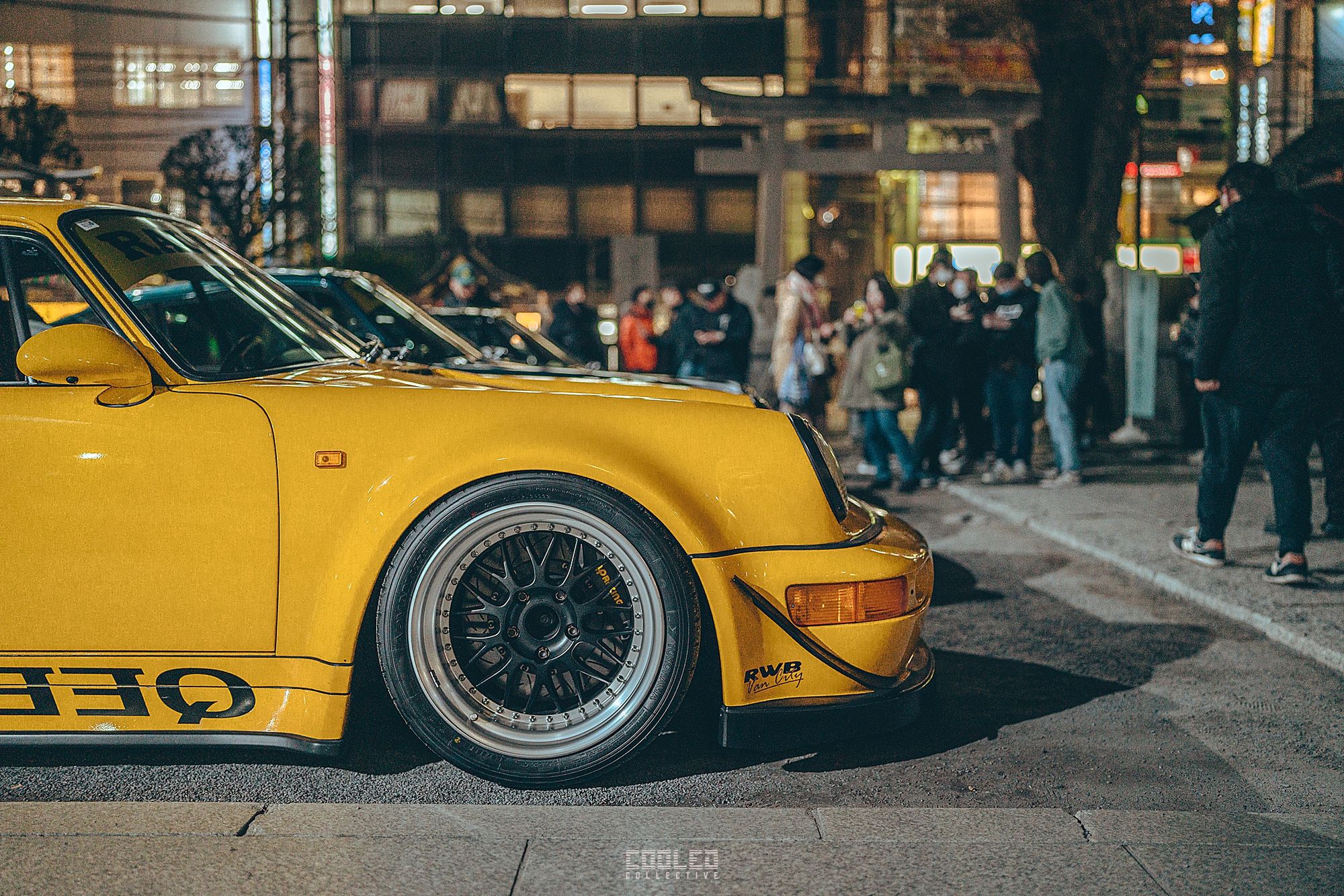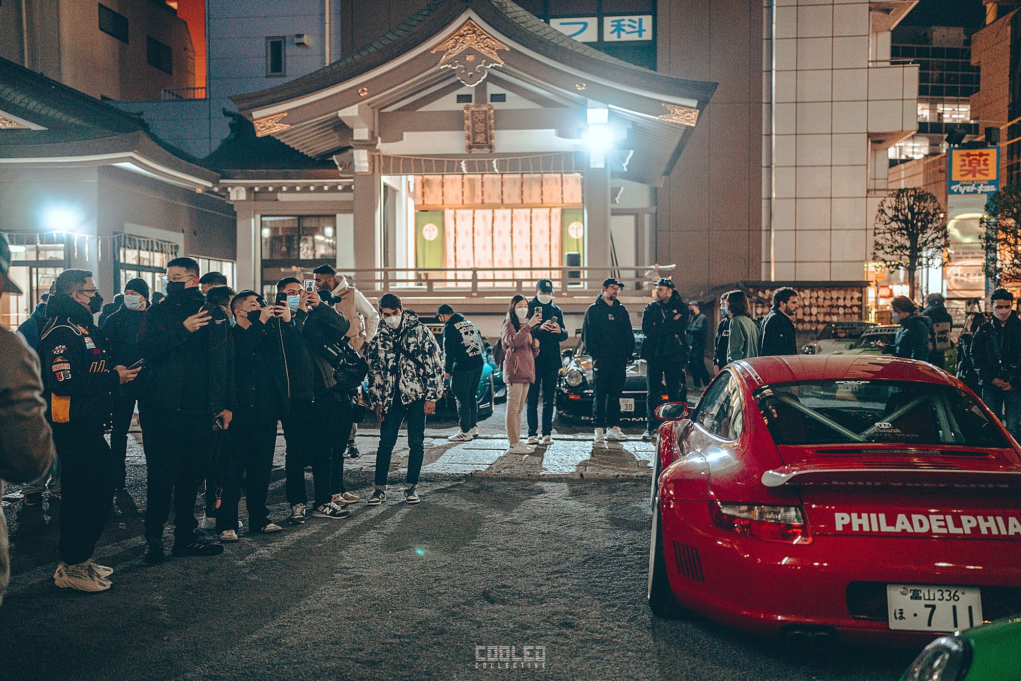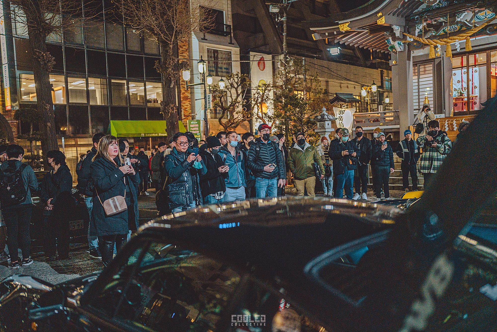 We pulled up to the shrine when it was already dark and a majority of the RWBs were already parked. A good sized crowd gathered and only continued to grow throughout the night. The location, although small was a perfect venue as it hosted the size of the crowd and kept things compact. Plenty of lighting to make it interesting. If you take a closer look throughout the crowd, you can see all sorts of high level social media and automotive cultural icons.