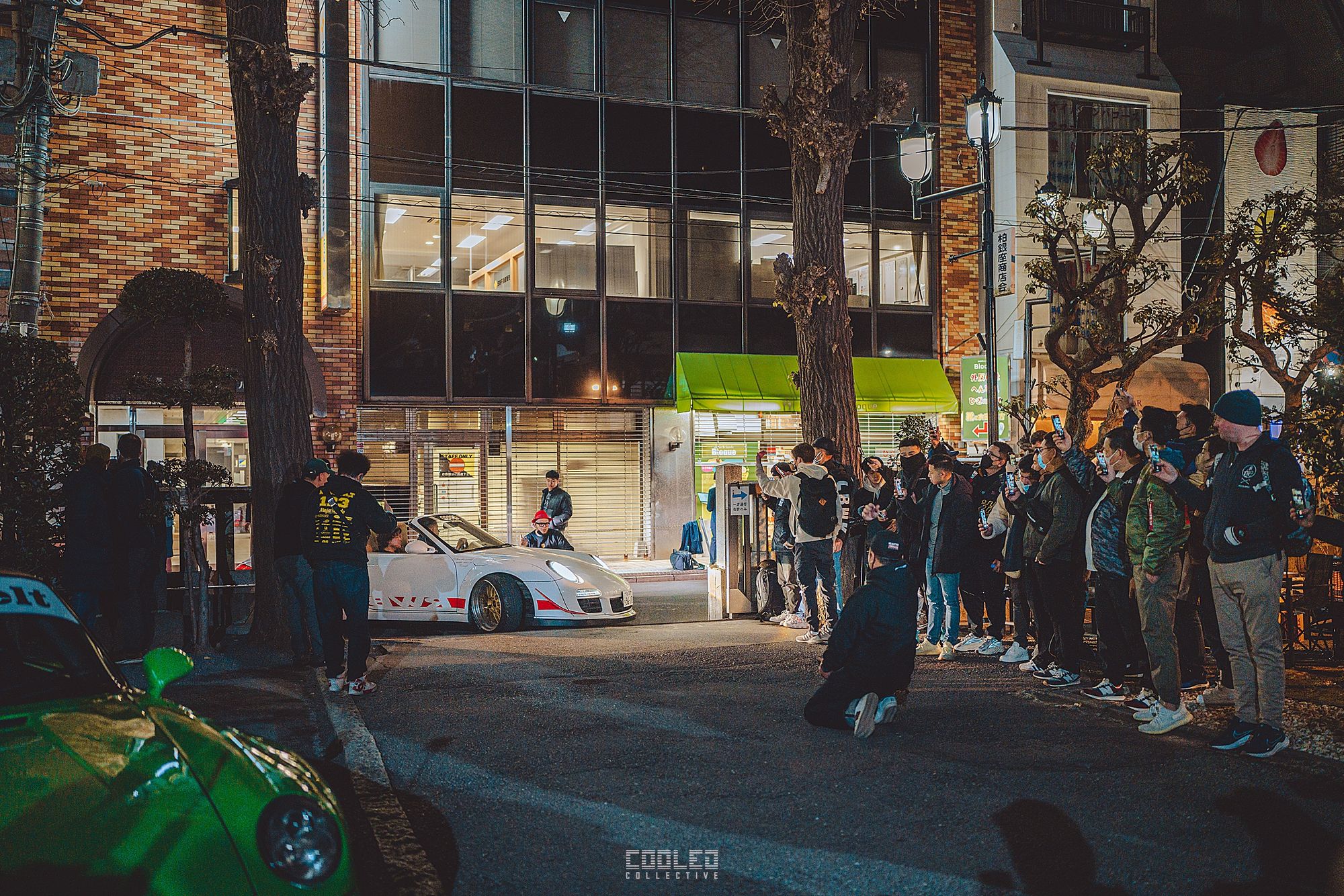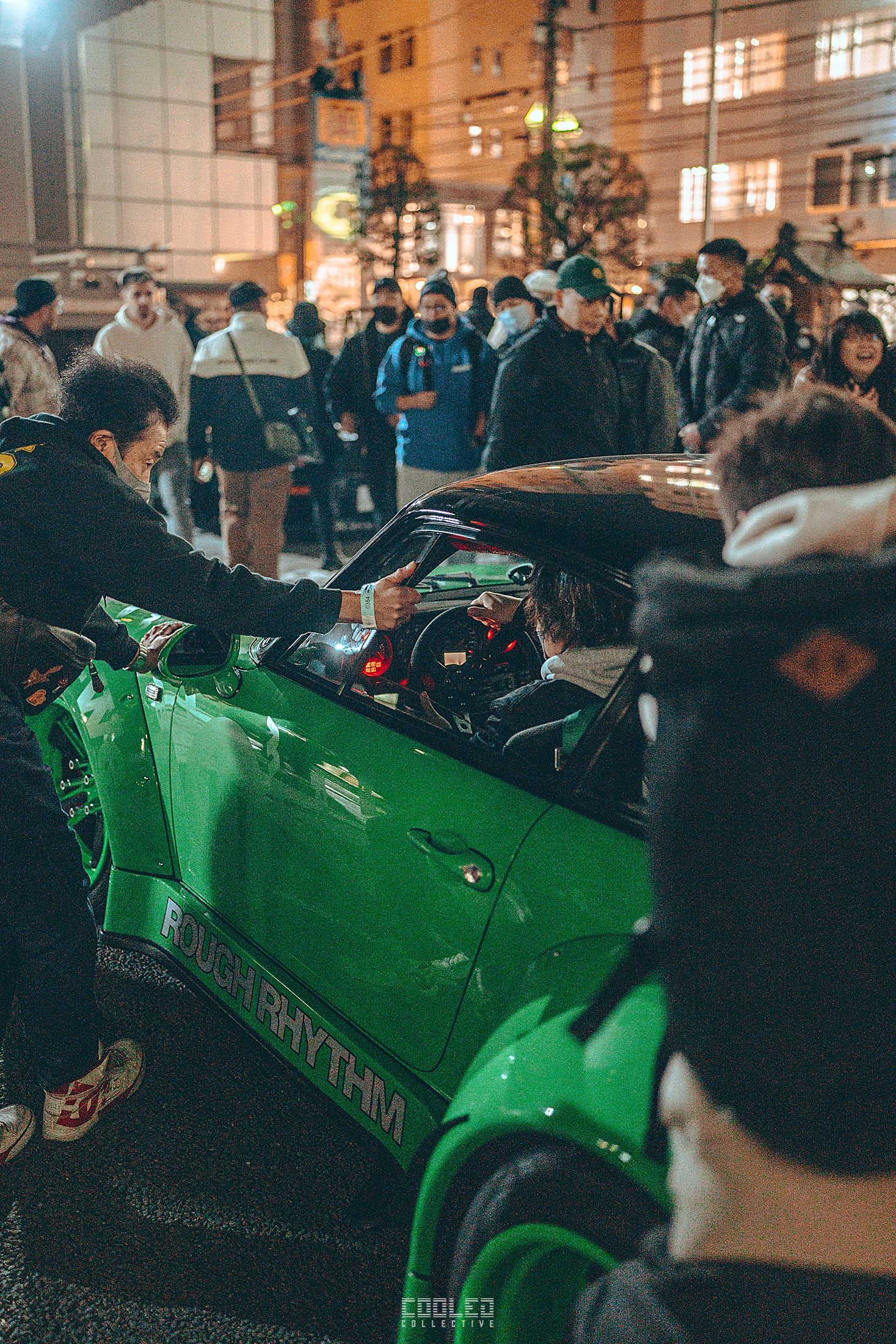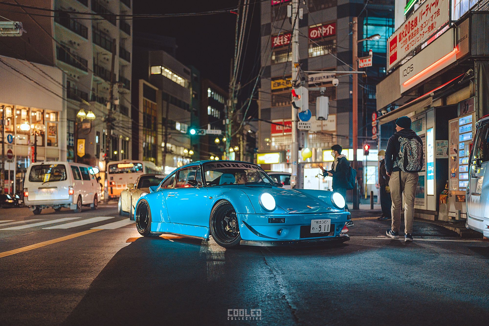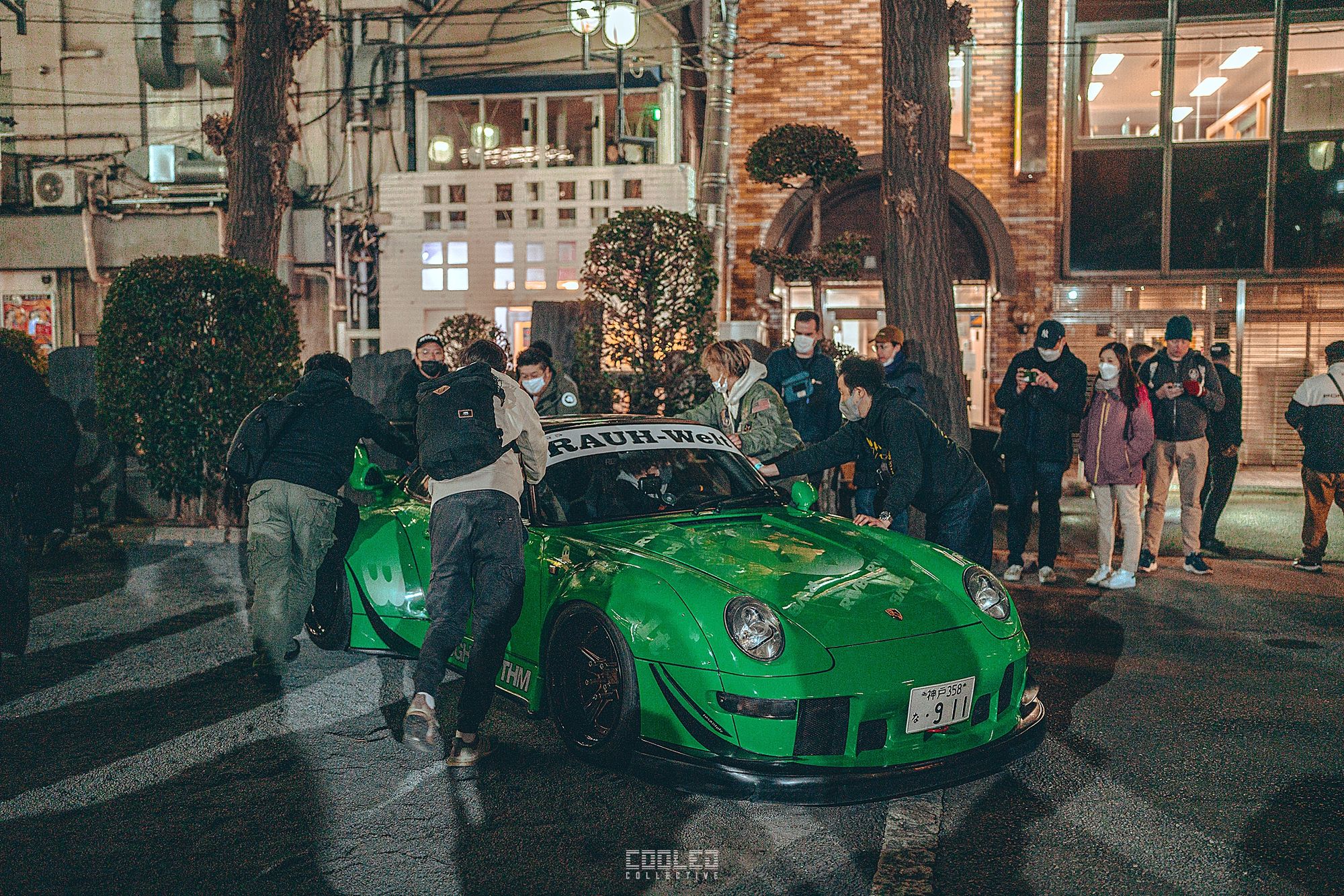 We pulled up to the shrine when it was already dark and a majority of the RWBs were already parked. A good sized crowd gathered and only continued to grow throughout the night. The location, although small was a perfect venue as it hosted the size of the crowd and kept things compact. Plenty of lighting to make it interesting. If you take a closer look throughout the crowd, you can see all sorts of high level social media and automotive cultural icons.